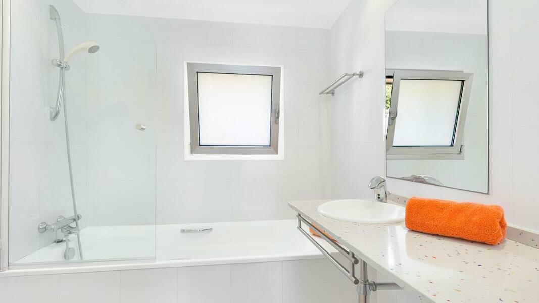 The villa has 4 bedrooms, a TV with satellite channels, an equipped kitchen with a dishwasher and a microwave, a washing machine, and 2 bathrooms with a shower. For added convenience, the property can provide towels and bed linen for an extra charge.