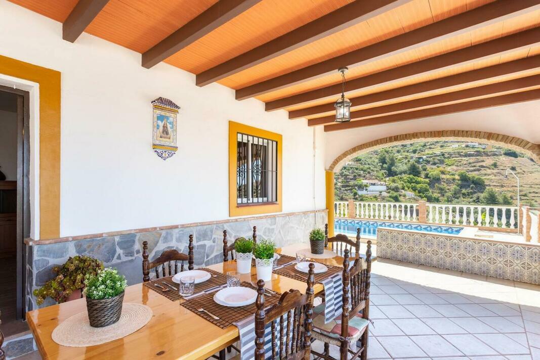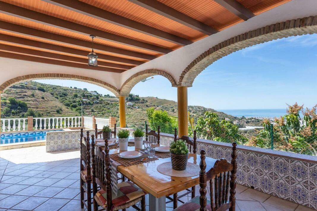 Beautiful country house located in Torrox, with stunning sea, city and mountain views. Private pool, ping-pong table, barbecue and air conditioning. The house is distributed on one floor, we find a large living room with air conditioning and fireplace, 32" TV with satellite and DVD, fully equipped kitchen with dishwasher, oven, microwave, combi refrigerator, ceramic hob, blender, drip coffee maker... It has 3 double bedrooms (main room with double bed and air conditioning, 1 room with 2 single beds and air conditioning and 1 room with two single beds). Full bathroom with shower. Outside it has a covered area with dining room and views of the city and sea, private pool 6 m x 3.2 m open all year, 4 hammocks, barbecue area with breakfast bar, ping-pong table and space to park 3 cars within the property grounds. The house has free Wi-Fi (30Mbps symmetrical) in the accommodation, gas thermos for hot water. The house is located about 3.2 km from Torrox village, and about 17 minutes drive from Torrox beach. Access is suitable for any tourism and the last part of 350 meters is a concreted lane. Pets allowed under supplement of € 50 per stay, No pets are allowed to use the sofas, beds or towels in the house with a penalty of up to € 50 for extra cleaning. The guest has to throw the garbage in the public containers (if in doubt about the closest location, contact us). Otherwise, a penalty of up to € 50. As well as leaving the kitchen utensils and kitchen utensils used by the guest clean (pans, pots, plates, glasses ...) Otherwise, a penalty of up to € 50. Since the cleaning includes the general cleaning of the house, including laundry of the whole house, as well as general cleaning of the kitchen, but does not include the garbage collection service or the cleaning of dirty utensils in the room. It is not allowed under any circumstances to exceed the maximum capacity of the house (visits, barbecues, birthdays, friends, family ...). Under penalty of up to € 300 depending on the case. Parties are not allowed, meaning parties: meetings of people with a high volume with sound equipment; unusual acoustic noise; or at hours of rest (from 10 pm to 8 am). The house is delivered clean and neat and guests are expected to treat it as if it were their own, with proper use of things, as well as looking for the material provided for their use and enjoyment. As is the case with umbrellas, if it is windy they remain closed, since in case of breakage the deposit will be charged, as well as good use of hammocks, chairs and other household items. In the event that any appliance / accessory does not work properly, please notify your contact person so that they can be aware of this failure and be able to fix it in the shortest possible time to achieve the most pleasant stay of the Guest. Depending on the house and guests staying you are given 1 or 2 sets of keys, in which the loss of any of these sets of keys by the guests will result in the change of the lock cylinder for a new one (for reasons security) so the cost of the change will be charged from the deposit, as well as the misuse of the keys in which the guests accidentally get locked outside the house and the keys are inside the house, depending on where the circumstance may be charged for the service. In the event that the key is forgotten inside the house lock, a locksmith will have to be called to open the house and this expense will be borne by the guest. The towels and sheets of the house (lingerie) are to make the stay in our houses a pleasant and comfortable experience for the guests, so please do not use the towels or linen for personal use to remove make-up, clean alcohol or wine of any surface since the cleaning of makeup, alcohol or wine can leave marks or irreversible stains on them and they will have to be discarded and the lingerie unit will be charged. The use of crystal glasses of any kind is not allowed in the pool or on the edge of it, due to possible detachments of crystals inside the pool and future cuts by guests. Baby cot and high chair under request and under a fee 35€ per stay. Extra bed linen and towels for the whole house is 32€ for 6 people.