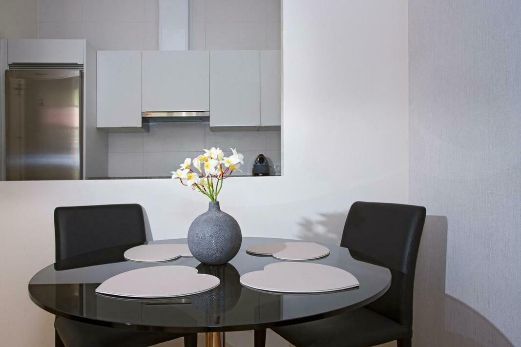 The apartments include a seating area with a flat-screen TV and a sofa and the studio has 2 arm chairs. The kitchenette is equipped with a washing machine, hob, and microwave, and there is a small dining table.