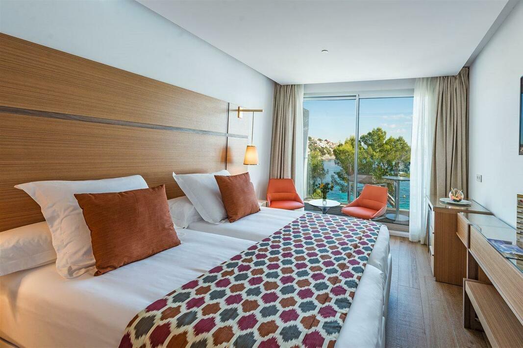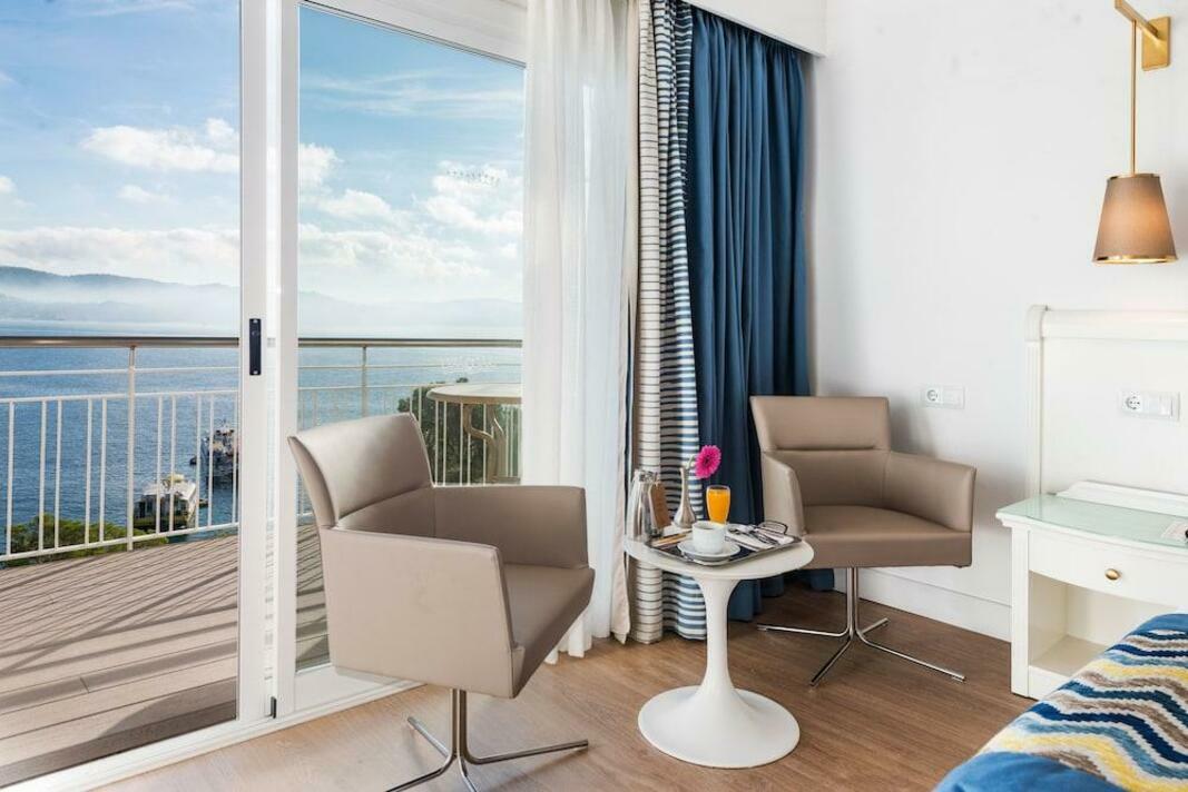 Air conditioning and central heating ensure that rooms maintain comfortable temperatures. In most units, guests can enjoy a view of the sea from a balcony or terrace. Rooms include a queen-size bed. Extra beds can be requested. A safe and a minibar are also available. Guests will also find a tea/coffee station included among the standard features. A trouser press is provided for guests' convenience. A direct dial telephone, a television with satellite/cable channels, a radio and WiFi are provided as well. A hairdryer and a telephone are provided in the bathrooms, which include a shower and a bathtub. Wheelchair-friendly rooms can be booked.