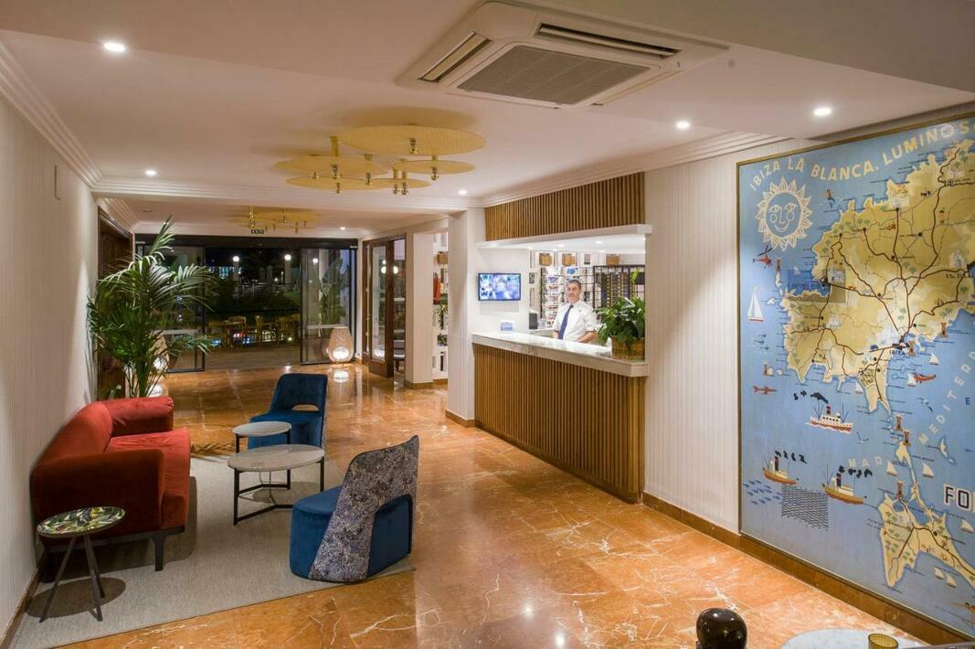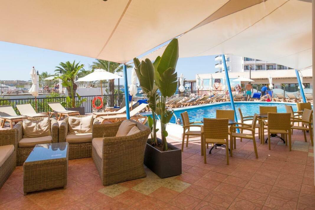 This beach hotel is centrally situated just across the road from the beautiful blue sea and the inviting sandy beach. The hotel is located just a short distance from the tourist centre of the town. Plenty of shopping venues, countless restaurants, bars and nightclubs are to be found in the hotel's neighbourhood as are links to the public transport network. The centre of San Antonio can be reached on foot, lying just 1.5 km from the hotel.