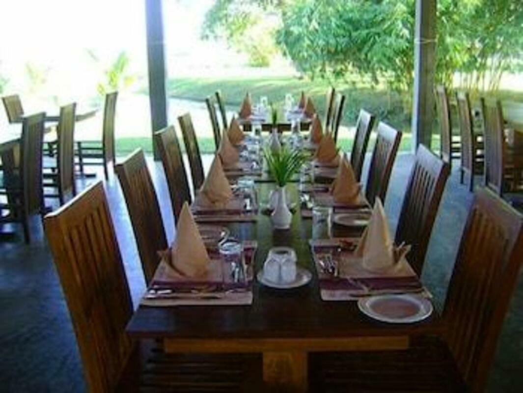 The dining area includes a restaurant and a bar. A continental breakfast buffet and lunch are served every day. Diet meals and children's meals can be prepared on request. The resort also offers special catering options.