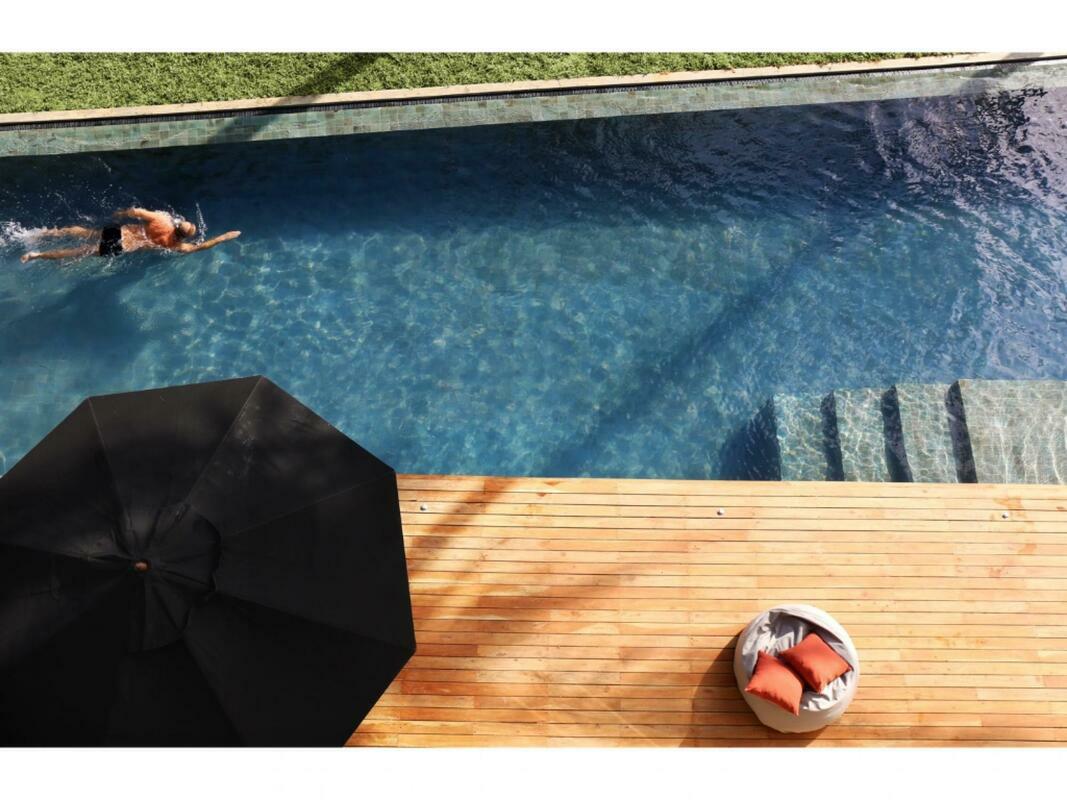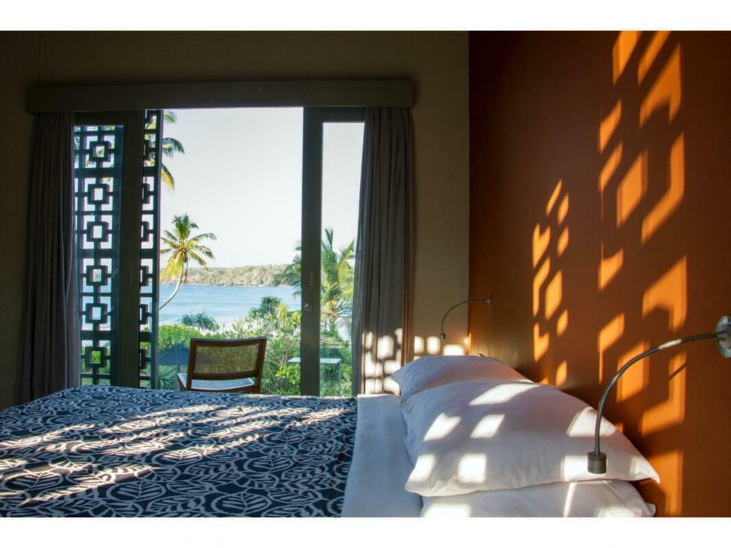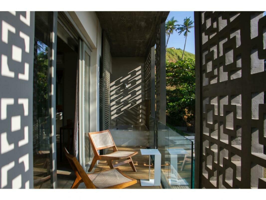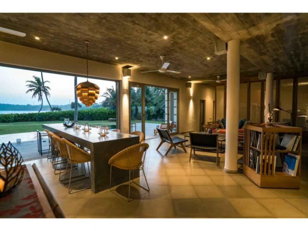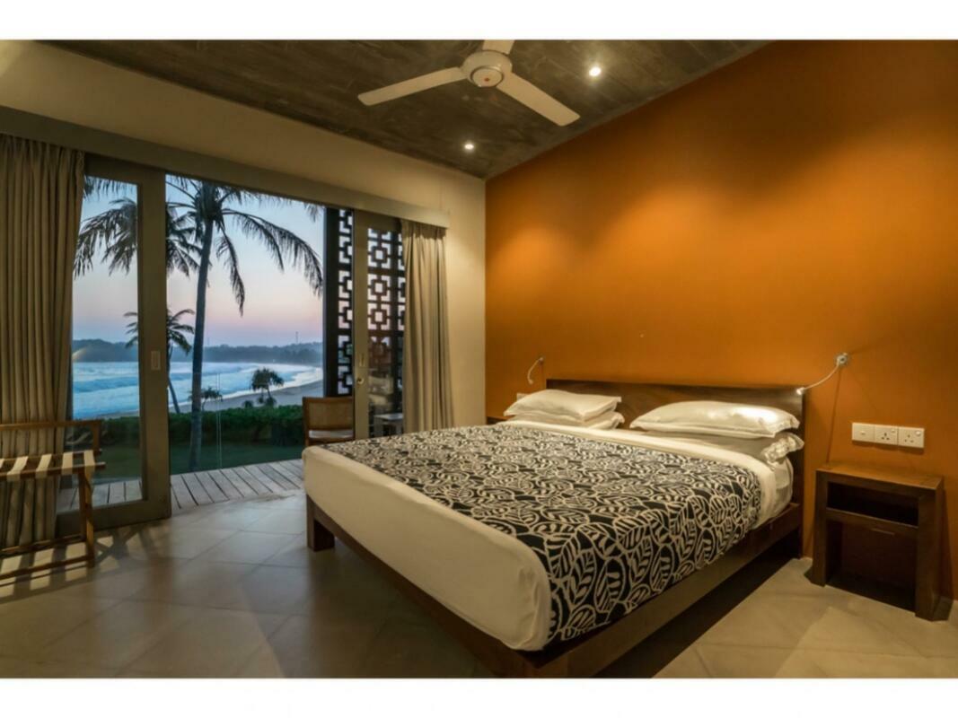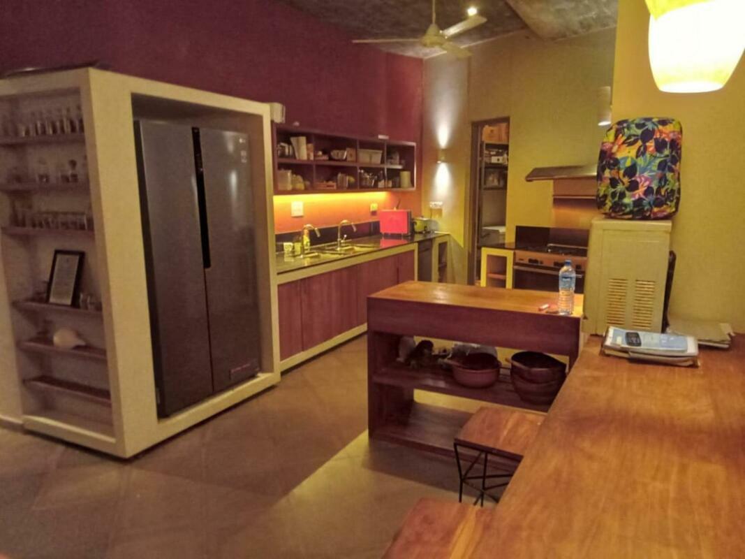Talalla House, tucked into a hill with breath taking views & direct access to one of the most beautiful southern beaches in Sri Lanka, sleeps 14 people, in 7 en suite bedrooms. 5 of the bedrooms are in the main house & the her 2 are accessed from the garden. Enter the architecturally modern Talalla House via a labyrinth where sunlight passes through slits in the wall to light up a tropical fishpond. Hear the ocean as you walk the long hall, past the kitchen, into the open living area. From here, all eyes are drawn to the highlight of Talalla, the golden sandy beach stretching away from you for a kilometre. It is framed by the pool’s infinity edge and a lush tropical garden. The living area is open plan with a dining table for up to 14 people - 10 seated in the house & 4 outside on the pool deck. The entire living area opens to the deck and pool. On the ground floor adjoining the living area, is one of the 5 main house suites en suite bedroom. It has sliding doors that open to the pool deck. From the living area, a floating stairway takes you to the first floor hallway with access to the remaining four bedrooms. All come with air-conditioning & private balconies that offer undisturbed ocean views. The master & second suite both have bathtubs on the balconies. At the end of the hall you enter the covered, open air yoga studio facing the ocean. If you wish, this area can also function as a private covered terrace for the master suite. From here take the stairway to the rooftop with its 30 m (100 ft) long garden from where you look westerly over the beach & the open ocean. The rooftop garden has a small bar and lounge chairs for sunset drinks. Back at the ground floor, walk past the pool & across the garden to the entrance of two smaller garden rooms, each with air con, en suite shower. We'd suggest these rooms are perfect for teenagers. There is also an outside dining table under the shade of trees. At the back of the house you’ll find the staff quarters. Talalla House has a 24/7 security guard and a gated parking area. NB: Meals are offered on a full board and it is USD 45 per day per adult and USD 22.5 per day per child 12 - 5