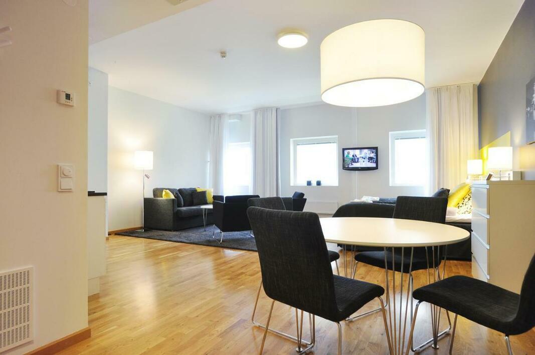 Rooms feature a kitchen and a bathroom. Individually adjustable heating ensures comfortable temperatures. The rooms have a queen-size bed and a sofa bed. Extra beds can be requested. A fully-equipped kitchenette with a refrigerator, stovetop, microwave and tea/coffee station, as well as a complete set of utensils, is a standard feature. An ironing set is provided for guests' convenience. A TV, a radio and WiFi (no extra charge) are provided as well. Bathrooms are equipped with a shower and include a hairdryer. The hotel has family rooms and non-smoking rooms.