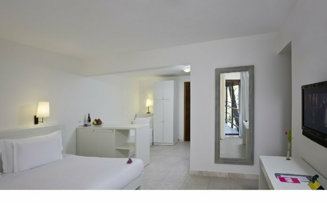 Air conditioning and adjustable central heating ensure that rooms maintain comfortable temperatures. Guests can enjoy the sea view from a balcony or terrace. Rooms include a double bed. Children's beds can be requested for younger guests. A safe and a minibar are also available. Additional features include a mini fridge and a tea/coffee station. A telephone, a TV and WiFi (no extra charge) provide all the essentials for a comfortable holiday. Slippers are included. A hairdryer and a telephone are available in the bathrooms, which are equipped with a shower. The resort has family rooms and non-smoking rooms.