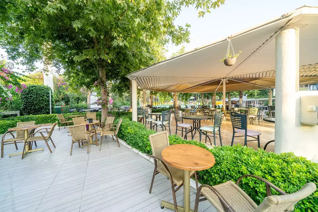 While the adults swim a few laps in the outdoor pool, children can enjoy splashing about in their own swimming area. A waterslide and a refreshing drink at the poolside snack bar offer the perfect way to unwind. Sun loungers and parasols are available on the sun terrace. The wide range of activities offered at the hotel ensures that there is something new to do every day, including cycling/mountain biking, tennis, bocce, beach volleyball, volleyball, basketball and archery. Water sports enthusiasts can enjoy jet skiing, water aerobics and aquafit. Guests can enjoy a wide range of indoor sports, including a gym, table tennis, badminton, billiards, darts, squash and aerobics. Various wellness options are available at the hotel, including a spa, a sauna, a steam bath, a hammam, a beauty salon and massage treatments. Leisure facilities include an entertainment programme, a kids' club and a dance club. Copyright GIATA 2004 - 2024. Multilingual, powered by www.giata.com for client no. 124971