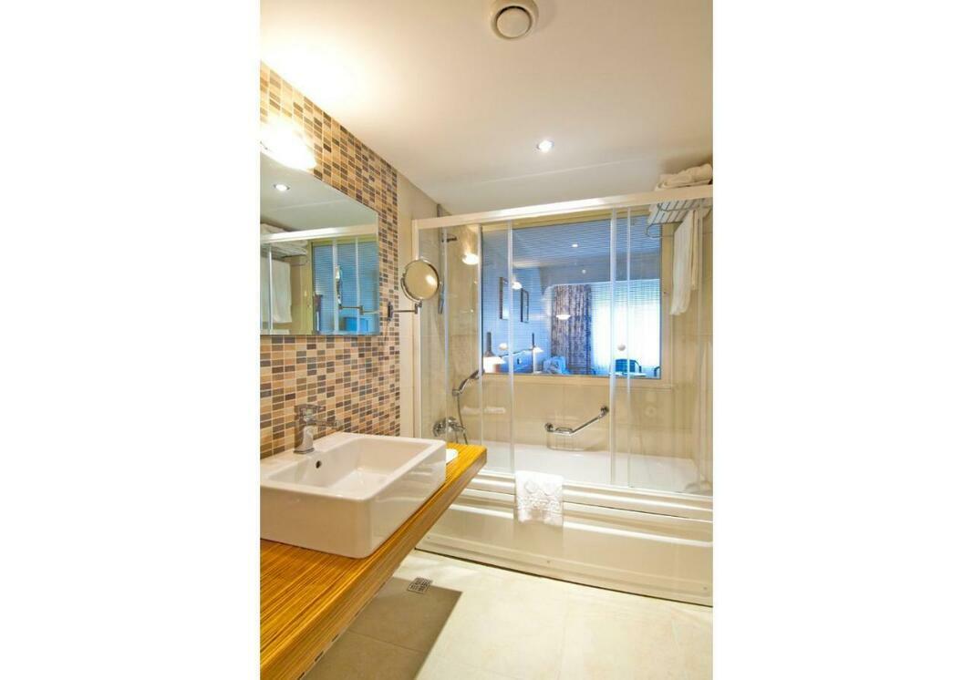 Air conditioning, central heating and a fan ensure that rooms maintain comfortable temperatures. Guests can enjoy the view of the city from a balcony or terrace. All rooms are carpeted and include a king-size bed and a sofa bed. Extra beds can be requested. A safe, a minibar and a desk are also available. Additional features include a refrigerator, a microwave and a tea/coffee station. There is also an ironing set and a trouser press. A direct dial telephone, a television with satellite/cable channels, a radio, a stereo system, an alarm clock and WiFi (no extra charge) provide all the essentials for a comfortable holiday. Guests can also make use of the cleaning service on departure. Slippers are included. A hairdryer and bathrobes are available in the bathrooms, which are equipped with a shower and a bathtub. Cosmetic products and a selection of towels provide additional comfort in the bathrooms. Guests can also book wheelchair-friendly rooms with wheelchair-accessible bathrooms. The hotel has family rooms, non-smoking rooms and smoking rooms.
