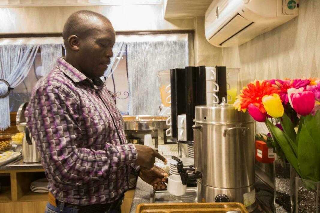 The dining area includes a restaurant and a café. Breakfast and lunch are served every day. Special meals, including diet meals, are also available. The hotel also offers special catering options.