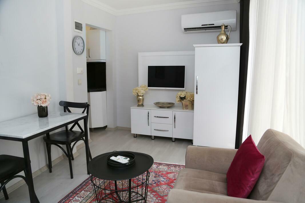 Air conditioning and central heating ensure that rooms maintain comfortable temperatures. Guests can enjoy the view onto the street from a balcony or terrace. The rooms have a double bed and a sofa bed. Separate bedrooms are available. Extra beds can be requested. A safe and a desk are also available. A fully-equipped kitchenette with a refrigerator, stovetop, microwave and tea/coffee station, as well as a complete set of utensils, is a standard feature. An ironing set is provided for guests' convenience. A telephone, a television with satellite/cable channels and WiFi (no extra charge) are provided as well. Slippers are included. Bathrooms are equipped with a shower and a bathtub, as well as a hairdryer. Cosmetic products and a selection of towels provide additional comfort in the bathrooms. The hotel has family rooms and non-smoking rooms.