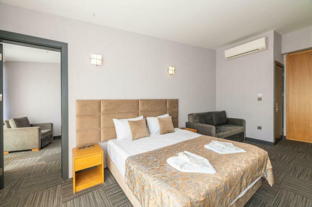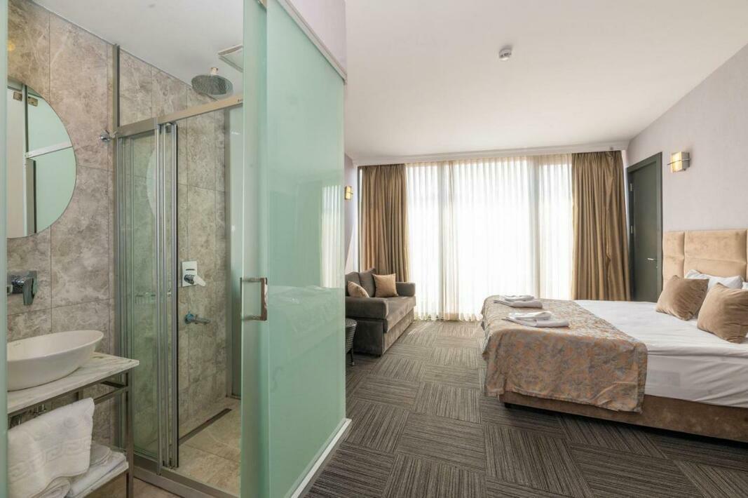 Air conditioning and central heating ensure that rooms maintain comfortable temperatures. In most units, guests can enjoy a view of the sea from a balcony or terrace. All rooms are carpeted and include a double bed and a sofa bed. Extra beds can be requested. A safe, a minibar and a desk are also available. Guests will also find a tea/coffee station included among the standard features. A trouser press is provided for guests' convenience. A telephone, a television with satellite/cable channels and WiFi (no extra charge) are provided as well. Slippers are included. Bathrooms are equipped with a shower and a hairdryer. Cosmetic products and a selection of towels provide additional comfort in the bathrooms. The hotel has family rooms, non-smoking rooms and smoking rooms.