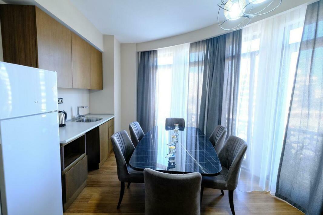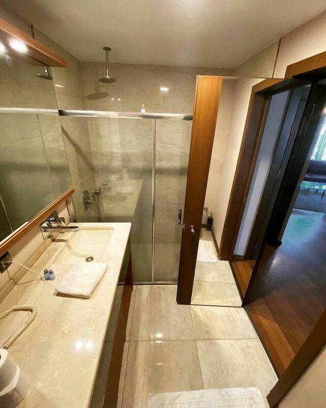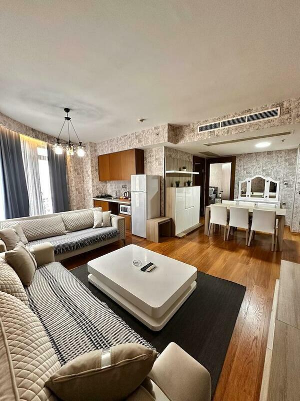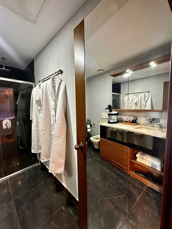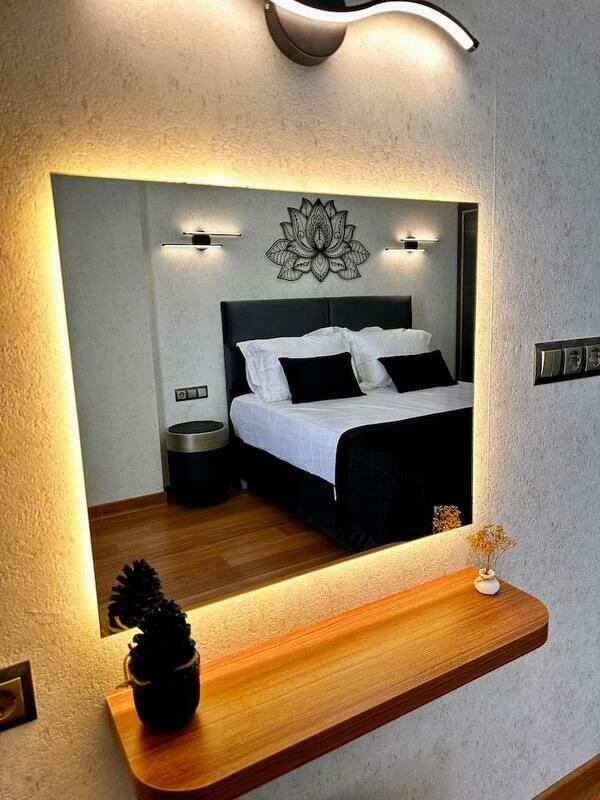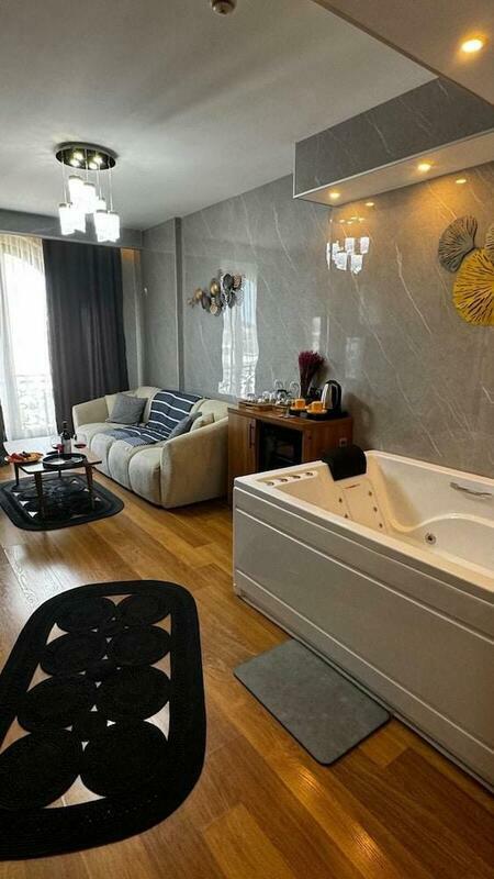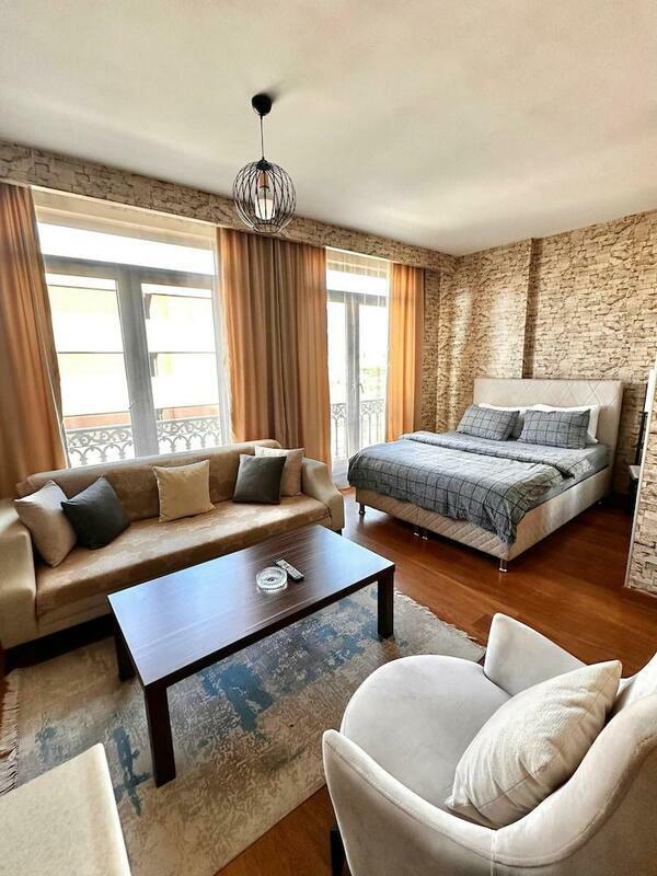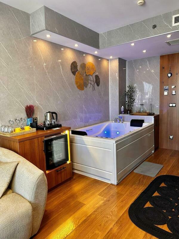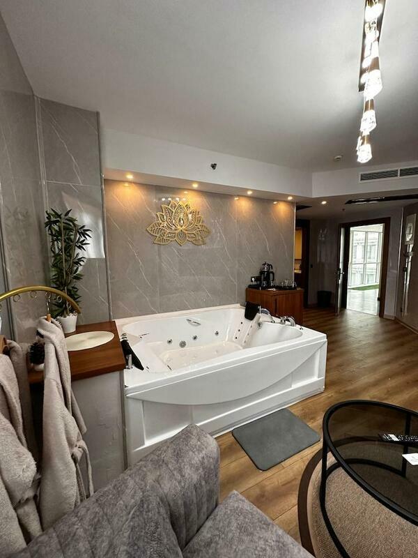 Rooms include air conditioning and central heating. The rooms have a king-size bed and a sofa bed. A desk is provided. The kitchenette comes with a refrigerator, a microwave and a tea/coffee station. An ironing set is provided for guests' convenience. A TV, a radio and WiFi (no extra charge) are provided as well. Slippers are included. Bathrooms are equipped with a shower, a bathtub and a whirlpool bath. A hairdryer and bathrobes are available for daily use. As a special feature, bathrooms are also stocked with cosmetic products and a selection of towels. The hotel has family rooms and non-smoking rooms.