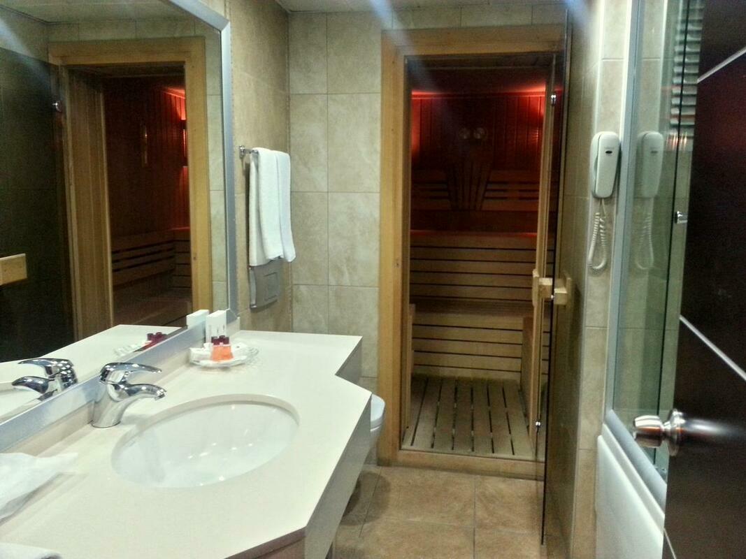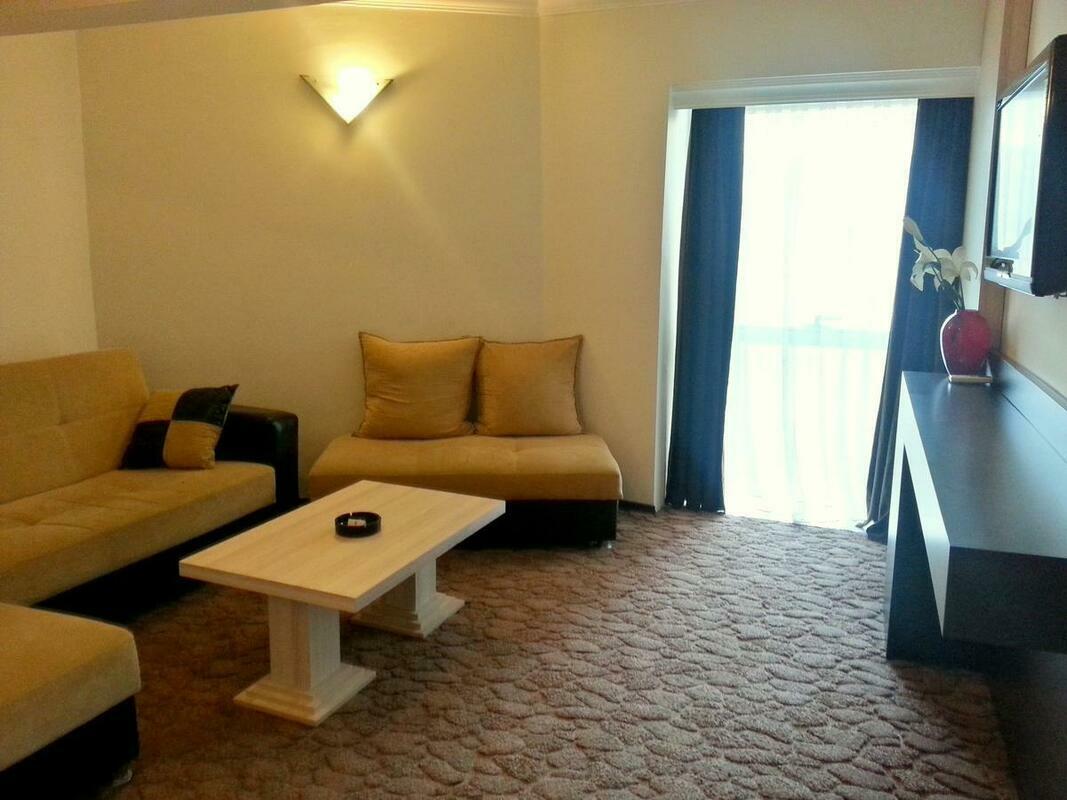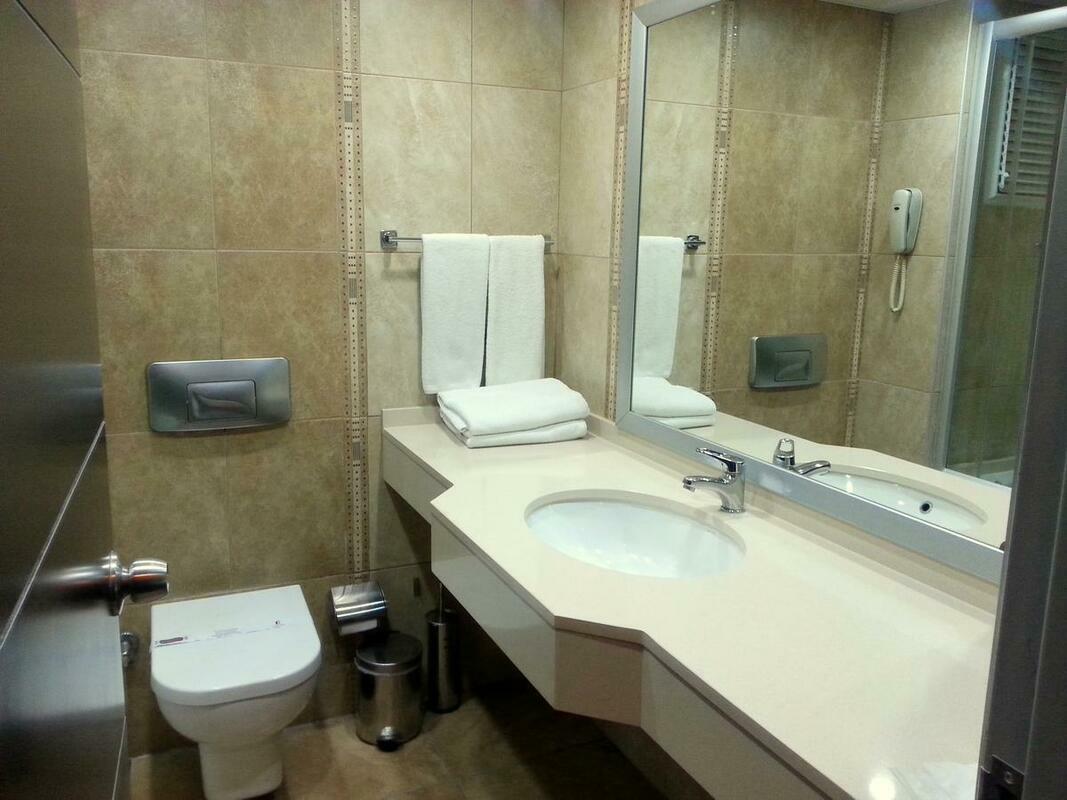 Air conditioning and individually adjustable heating ensure that rooms maintain comfortable temperatures. All rooms are carpeted and have a double bed or a sofa bed. Extra beds can be requested. A safe, a minibar and a desk are also available. There is also an ironing set and a trouser press. A direct dial telephone, a television with satellite/cable channels and WiFi (no extra charge) provide all the essentials for a comfortable holiday. Guests will also find slippers in their rooms. Bathrooms are equipped with a shower and a bathtub, as well as a hairdryer. As a special feature, bathrooms are also stocked with cosmetic products and a selection of towels. The hotel has family rooms and non-smoking rooms.