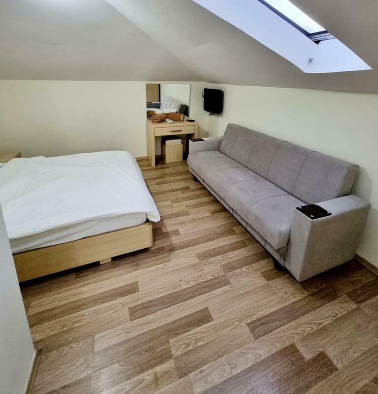 Central heating ensures that rooms maintain comfortable temperatures. Rooms have a queen-size bed or a sofa bed. A minibar is provided. A trouser press is provided for guests' convenience. A telephone, satellite television and WiFi (no extra charge) are provided as well. A hairdryer is provided in the bathrooms. The hotel has family rooms and non-smoking rooms.