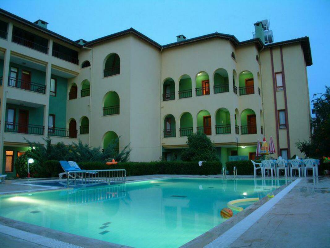 The apartment complex is located in the holiday resort of Side, on the Turkish Riviera. The centre as well as the fine sand beach are only about 800 m away. A shuttle bus runs to the beach a couple of times a day. Guests may take advantage of the countless shops and various nightclubs also within 800 m of the hotel. The old town is just 1 km away and the nearest city is Manavgat, roughly 5 km away. The complex is located on the main road, Cennetler Mevkii. Antalya Airport can be reached within around 45 minutes, around 65 km from the hotel.