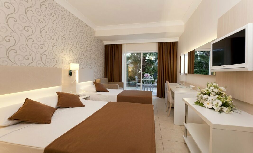 Air conditioning ensures that rooms maintain comfortable temperatures. A balcony is included as standard in some rooms. The rooms have a double bed and a sofa bed. Separate bedrooms are available. Children's beds and extra beds can be requested for younger guests. A safe, a minibar and a desk are also available. Extra comforts include a tea/coffee station. A direct dial telephone, a television with satellite/cable channels, a radio and WiFi (for a fee) provide all the essentials for a comfortable holiday. A hairdryer and a vanity mirror are available in the bathrooms, which are equipped with a shower and a bathtub. Wheelchair-friendly rooms can be booked. The hotel has family rooms and 159 non-smoking rooms.