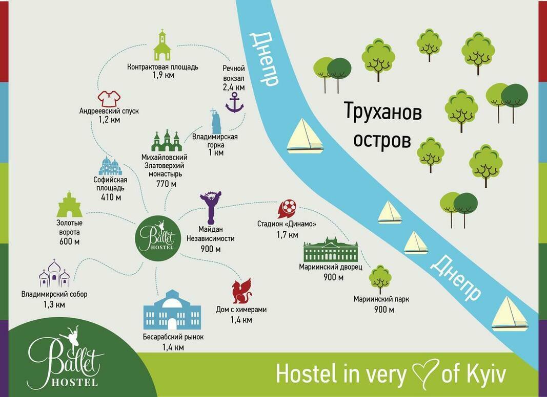 Located in the city centre of Kiev, just a 5-minute walk from Independence Square, Ballet Hostel features free Wi-Fi and a shared lounge. Kreschatyk Street is a 10-minute walk away.