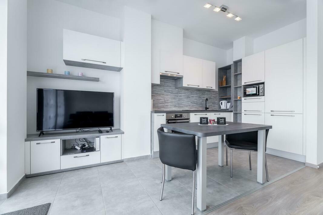 The apartment features 1 bedroom, a flat-screen TV with satellite channels, an equipped kitchen with a dishwasher and a microwave, a washing machine, and 1 bathroom with a bath or shower.