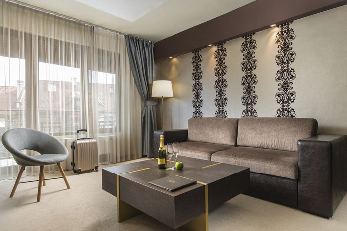 Air conditioning and central heating ensure that rooms maintain comfortable temperatures. All rooms are carpeted and have a double bed or a sofa bed. A safe, a minibar and a desk are also available. Guests will also find a tea/coffee station included among the standard features. A telephone, a television with satellite/cable channels and WiFi (no extra charge) provide all the essentials for a comfortable holiday. Guests will also find slippers in their rooms. A hairdryer and bathrobes are provided in the bathrooms, which include a shower. As a special feature, bathrooms are also stocked with cosmetic products and a selection of towels. The hotel has family rooms and non-smoking rooms.