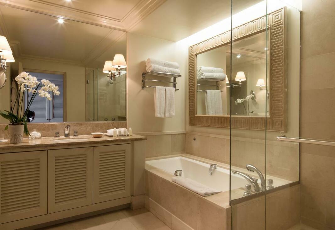 Rooms feature a living room, a kitchen and a bathroom. Air conditioning, individually adjustable heating and a fan ensure comfortable temperatures. Guests can enjoy the sea view from a balcony or terrace. Rooms have a double bed or a king-size bed. Guests can also book separate bedrooms. For a fee, extra beds or children's beds can be provided for little travellers. A safe and a minibar are also available. Additional features include a mini fridge and a tea/coffee station. An ironing set is provided for guests' convenience. A direct dial telephone, a television with satellite/cable channels, a radio, a DVD player and WiFi are provided as well. A turndown service provides guests with additional comfort in the evening hours. Slippers are included. Bathrooms are equipped with a shower, a bathtub, a whirlpool bath and a bidet. A hairdryer and bathrobes are available for daily use. For extra comfort in the bathrooms, guests are offered cosmetic products. Wheelchair-friendly rooms can be booked. The hotel has family rooms and 166 non-smoking rooms.