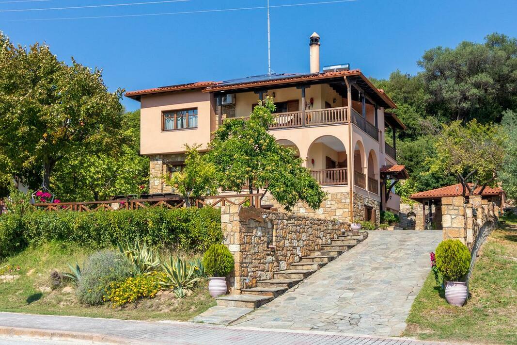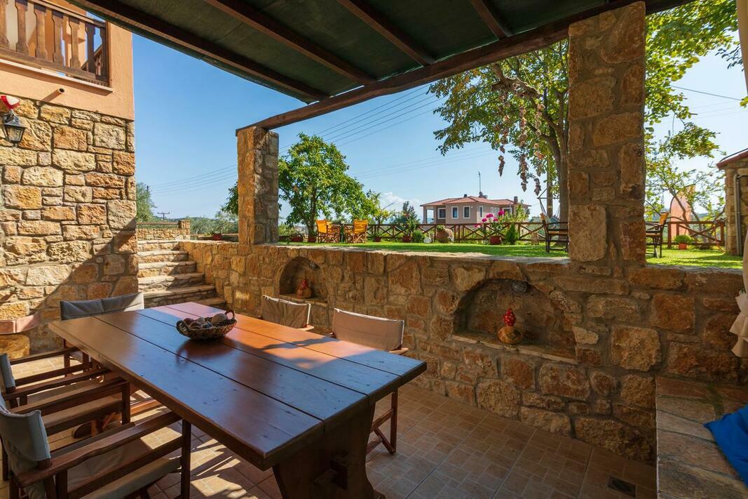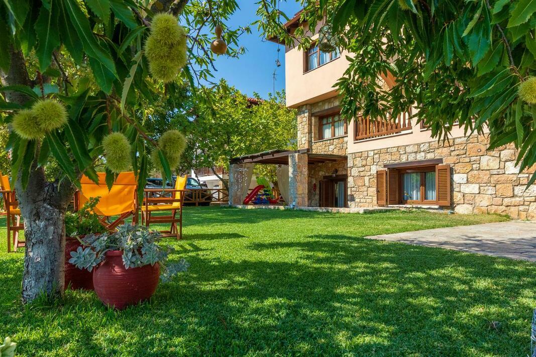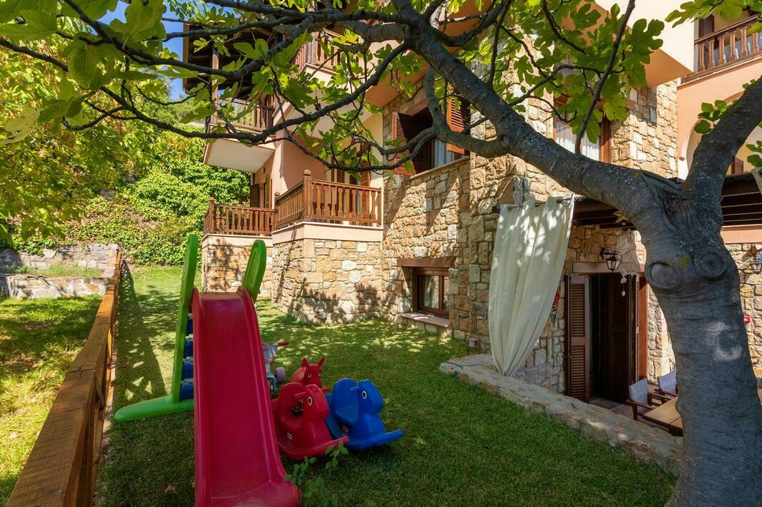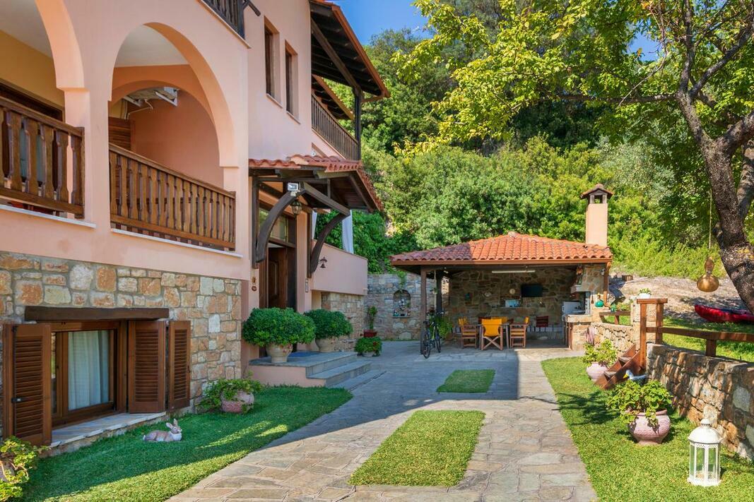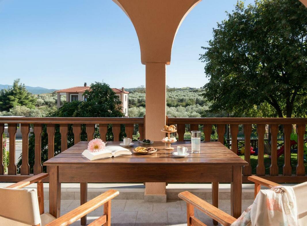 Este disponibilă o terasă cu vedere la mare și la Muntele Athos, iar grădina dispune de facilități de grătar. Internetul WiFi și parcarea sunt gratuite.