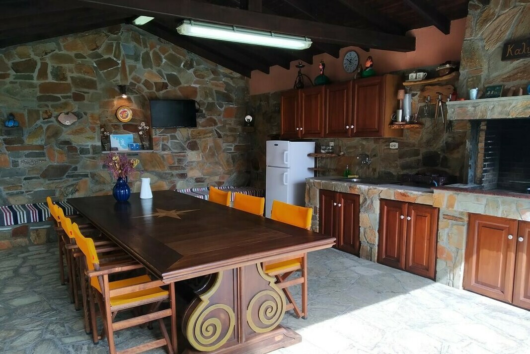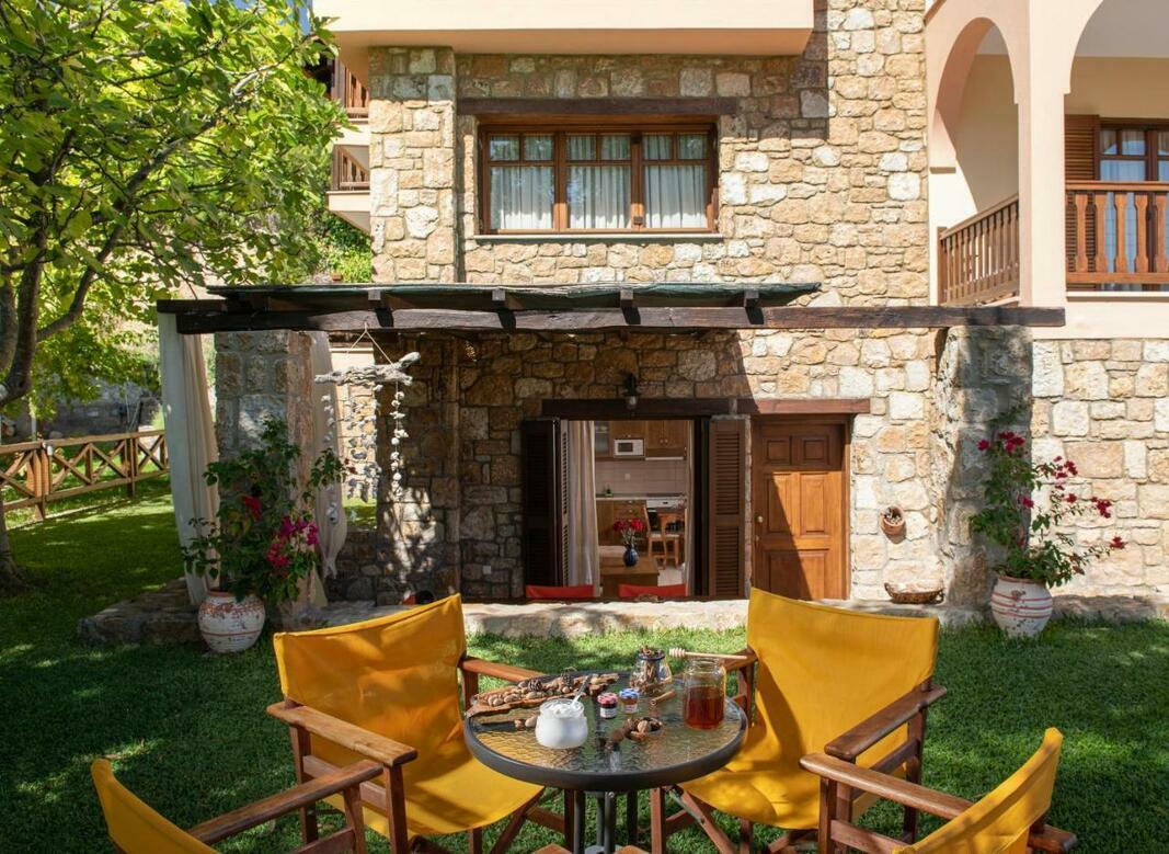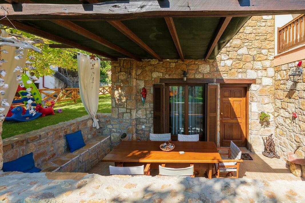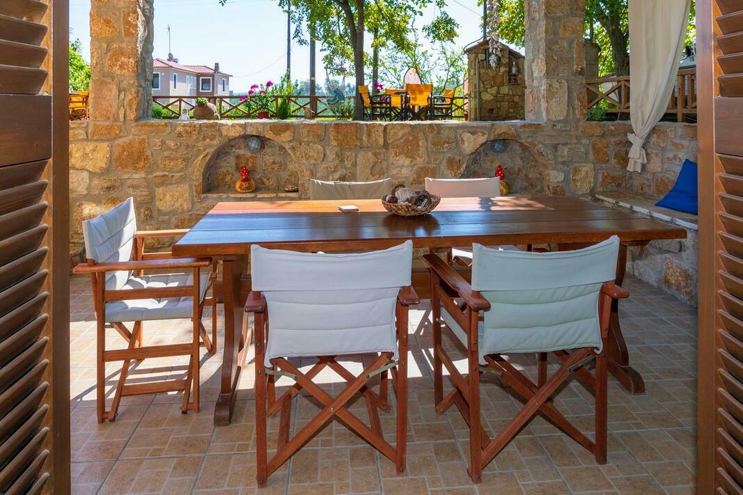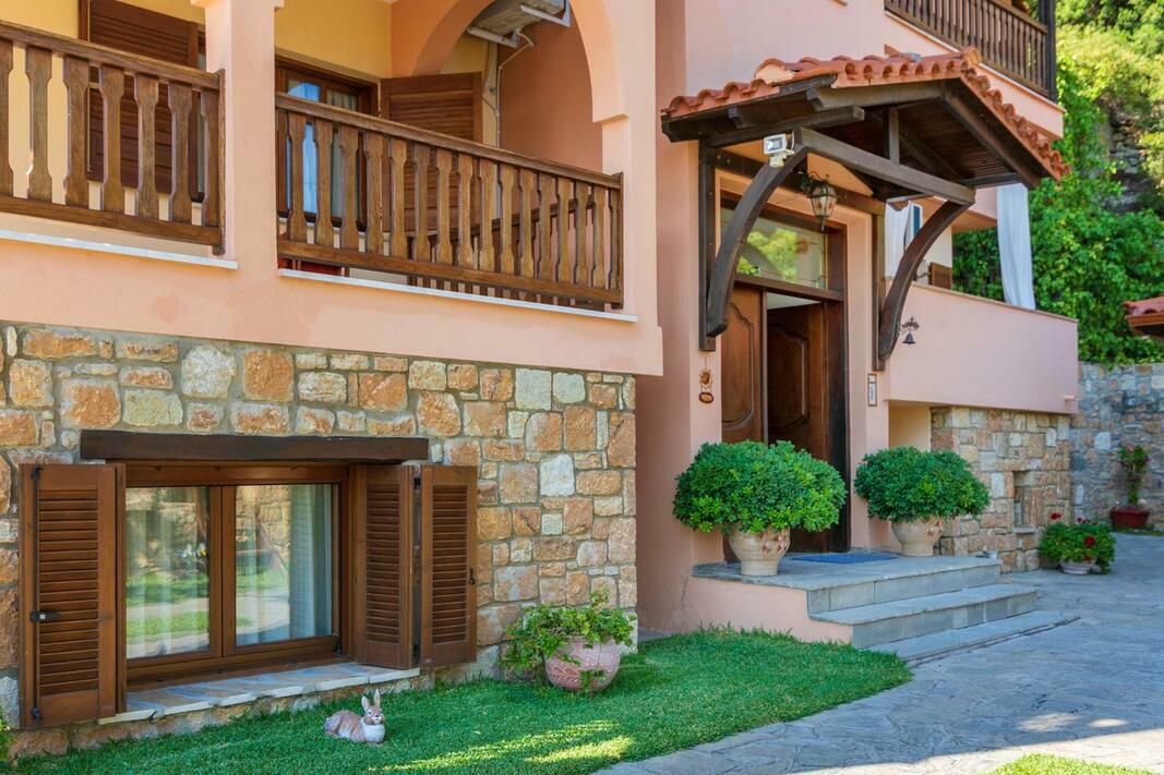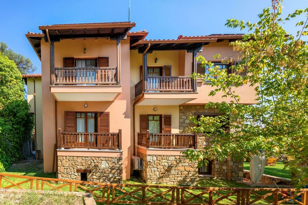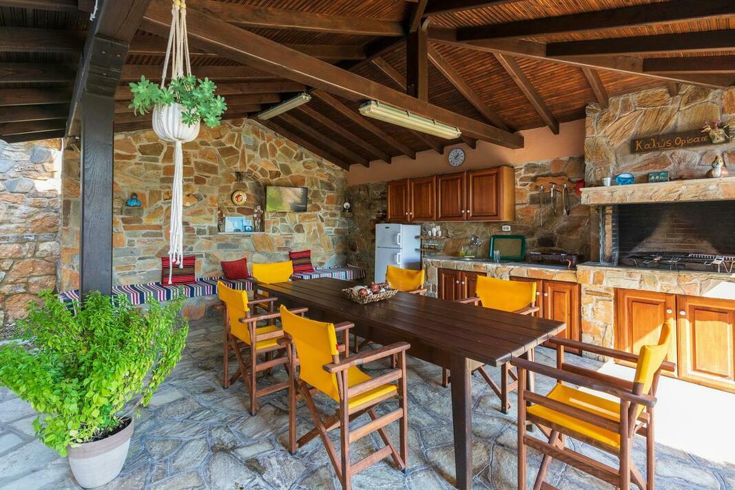 Este disponibilă o terasă cu vedere la mare și la Muntele Athos, iar grădina dispune de facilități de grătar. Internetul WiFi și parcarea sunt gratuite.