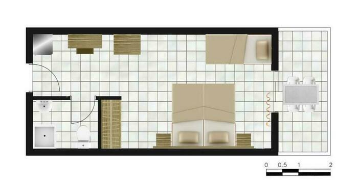Cameră Superior cu vedere la grădină – Suprafață de 23 m². Include aer condiționat, terasă cu vedere la grădină, TV, baie și uscător de păr. Număr de persoane - max. 4.