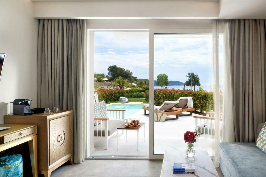 Rooms are equipped with air conditioning and central heating. In most units, guests can enjoy a view of the sea from a balcony or terrace. The rooms have a king-size bed and a sofa bed. Separate bedrooms are available. Children's beds and extra beds can be requested for younger guests. A safe, a minibar and a desk are also available. Guests will also find a tea/coffee station included among the standard features. There is also an ironing set and a trouser press. A telephone, satellite television and WiFi are provided as well. Guests will also find slippers in their rooms. Bathrooms are equipped with a shower and a bathtub. A hairdryer, a vanity mirror, bathrobes and a telephone are available for daily use. Wheelchair-friendly rooms can be booked. The hotel has family rooms and non-smoking rooms.