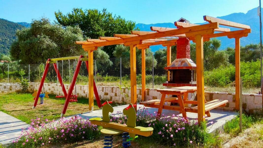 A playground area and BBQ facilities are featured in the garden.