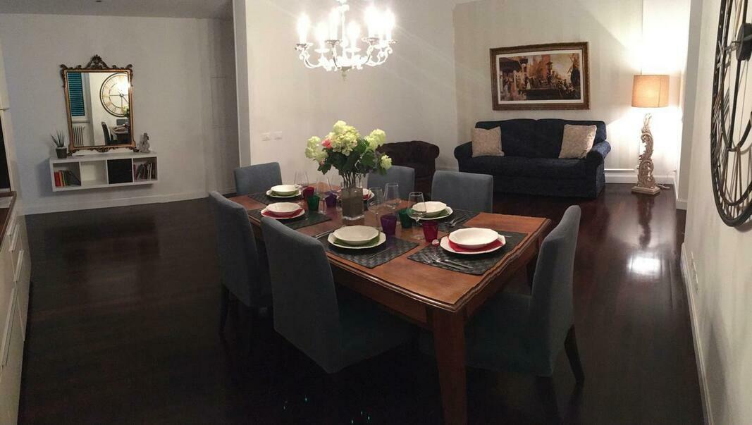 The apartment features 3 bedrooms, a flat-screen TV, an equipped kitchen with a dishwasher and a microwave, a washing machine, and 1 bathroom with a bidet.