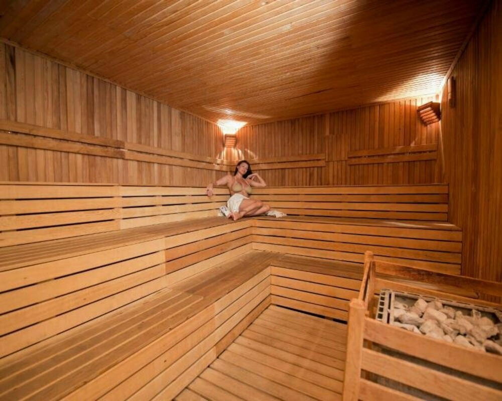 Puteți să vă răsfățați cu o baie de aburi în sauna amenajată în hotel