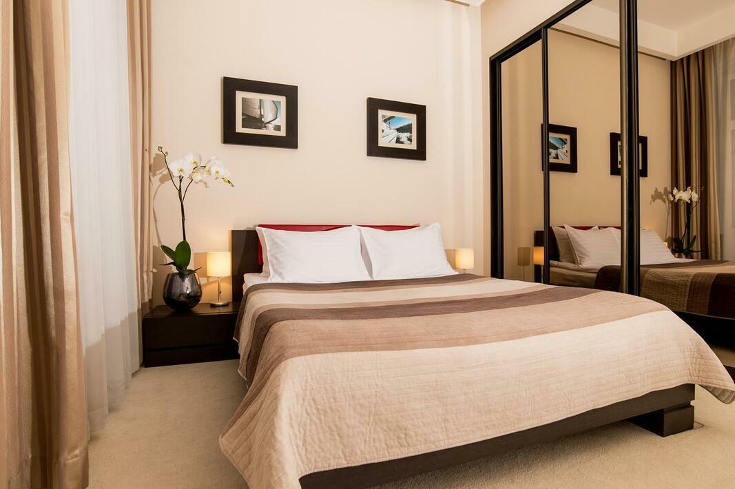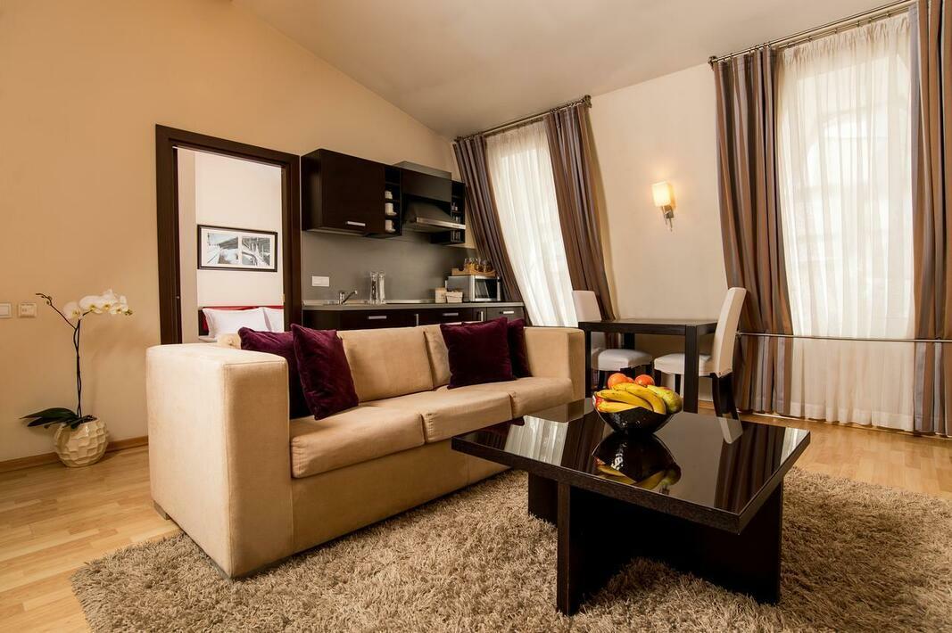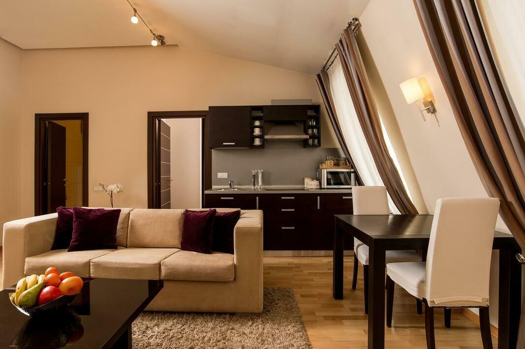 Hotel apartamentowy zbudowany został w roku 2008. Hotel oferuje 35 pokoi. Poszczególne piętra osiągalne są za pomocą windy bądź też schodami. Dopełnieniem komfortowego pobytu jest możliwość skorzystania z szatni, przechowalni bagażu i sejfu. Wi-Fi umożliwia dostęp do internetu również w pomieszczeniach ogólnodostępnych. Na urozmaiconą ofertę gastronomiczną składają się restauracja, jadalnia, sala śniadaniowa, kawiarnia i bar. Na terenie obiektu znajduje się również kiosk z prasą. Goście przybywający własnym autem skorzystać mogą z parkingu. Do pozostałych oferowanych na miejscu usług należą: 24-godzinna ochrona, transfer hotelowy, usługi tłumaczeniowe, serwis pokojowy i pralnia.