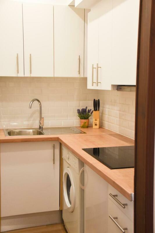 The 1-bedroom apartment features a living room with flat-screen TV, and a fully equipped kitchen with fridge. Towels and bed linen are offered in the apartment.