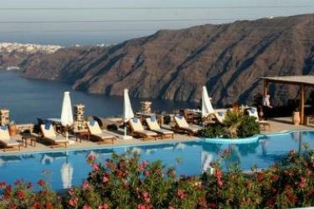 Imerovigli Palace has a very large swimming pool with a superb terrace and lounge piano bar overlooking the caldera.