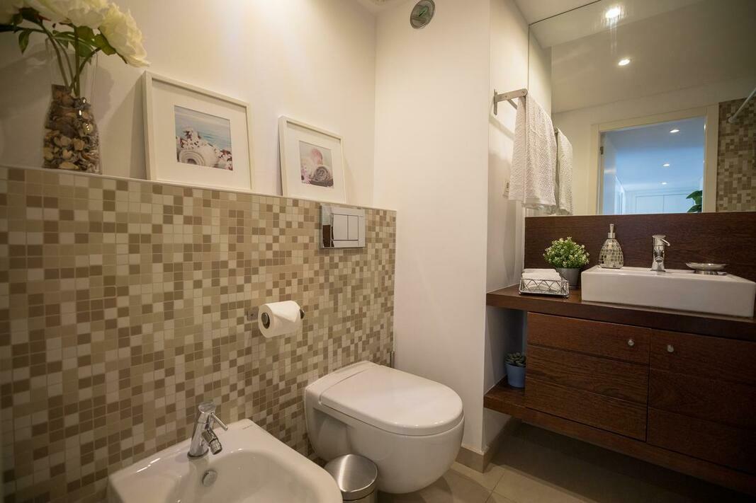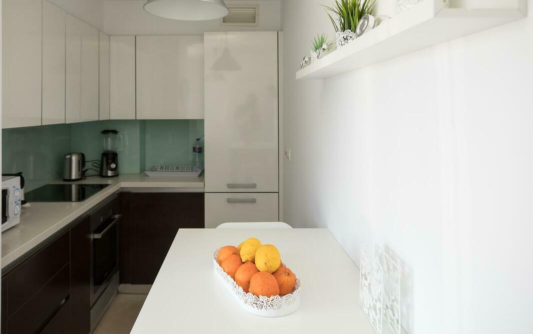 The air-conditioned apartment consists of 1 bedroom, a living room, a fully equipped kitchen with a fridge and a coffee machine, and 1 bathroom with a bidet and a hairdryer. Towels and bed linen are offered in the apartment.