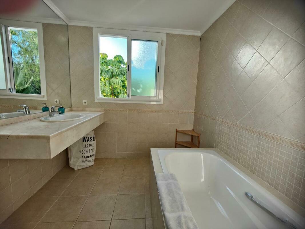 The spacious apartment has 3 bedrooms, a TV, a fully equipped kitchen with a dishwasher and an oven, a washing machine, and 4 bathrooms with a bath. Towels and bed linen are offered in the apartment.