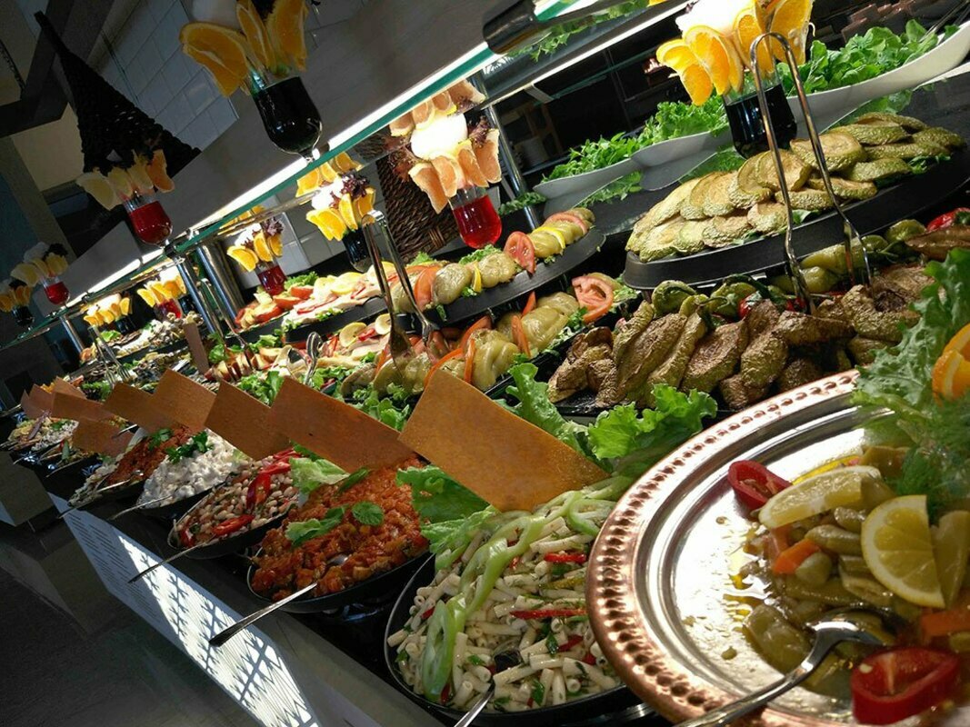 На протяжении всего времени пребывания в гостинице, постояльцам доступно питание в основном ресторане, организованное по типу шведского стола. Блюда готовятся из натуральных ингредиентов, а продукты закупаются у проверенных поставщиков с заботой о высоком качестве. Широкий ассортимент свежих фруктов и овощей, гарниров, соусов, рыбных и мясных блюд, выпечки и десертов оценят даже самые взыскательные гости. Для соблюдающих диетическое питание также есть множество предложений.