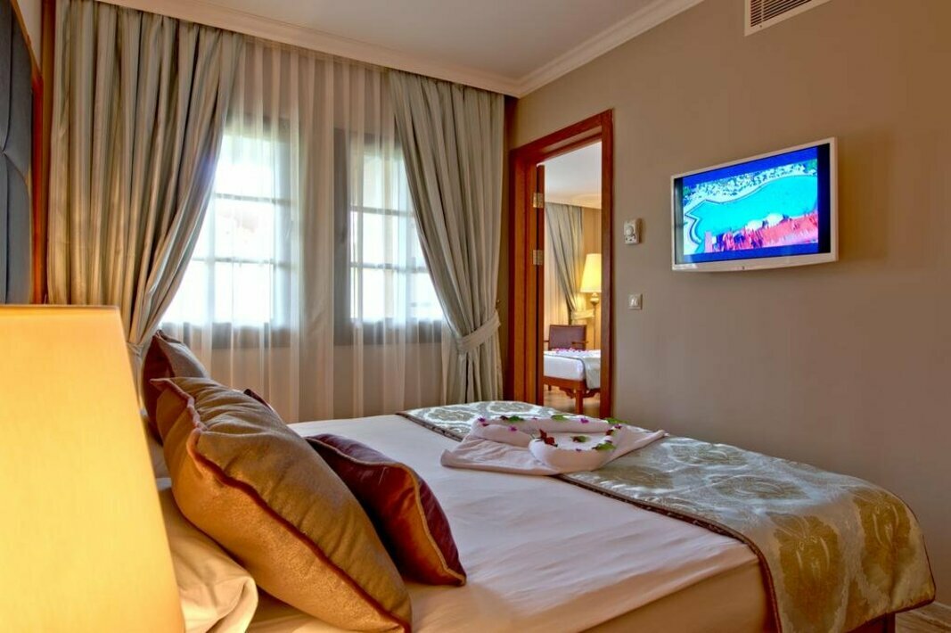 Location The hotel enjoys a beachfront location on the lovely coast of Belek just 2 km from the resort centre with its restaurants, bars, pubs and shopping venues. Local public transport is available from in front of the hotel with links to nearby towns. Antalya Airport is approximately 45 km from the establishment. Facilities Guests are welcomed at the holiday village, which has a total of 772 rooms. These are located in the main building (6 storeys) or in one of the 2 adjacent buildings (up to 3 storeys). The facility consists of 243 villas/houses. Individual storeys are accessible via the lift or stairs. Amenities include a safe and a currency exchange service. Wireless internet access is available to travellers in the public areas. Among the culinary options available at the complex are a restaurant, a café, a bar and a pub. Various shops are available, including a supermarket and a souvenir shop. The grounds of the accommodation feature a playground and an attractive garden. Those arriving in their own vehicles can leave them in the car park of the complex. Additional services include medical assistance, room service, a laundry service and a hairdresser. Rooms Each of the rooms is appointed with air conditioning, central heating, a living room and a bathroom. Most rooms feature a balcony with a view for guests' enjoyment. Many rooms feature a sea view, which further enhances the ambience. The rooms have a double bed, a king-size bed or a sofabed. Separate bedrooms are also available. Cots are available for younger guests. A safe and a minibar are also available. Internet access, a telephone, a TV and WiFi (no extra charge) add to the comfort of the holiday. The bathrooms are fitted with a shower and a bathtub. A hairdryer can also be found in each of the bathrooms. Special family rooms are available for families with children. Sports/Entertainment A refreshing dip in the indoor or outdoor pool is an enjoyable way to cool down on hot days. A waterslide offers fun for all ages. Sun loungers and parasols are ideal for relaxation. There is also a poolside snack bar. A variety of sporting activities are available at the holiday village, for example biking/mountain biking, bocce, beach volleyball, basketball, golf and Nordic walking, or for a fee, tennis and archery. Travellers at the complex can choose from a range of water sports options, such as sailing and aquafit, or for a fee, water skiing, windsurfing, banana boat rides, canoeing, catamaraning and diving. The accommodation offers a wide range of indoor sporting activities, for example a gym, darts, yoga, gymnastics and aerobics, or for a fee, table tennis, badminton and billiards. The complex offers a range of services in the wellness area, such as a spa, a sauna, a steam bath, a hammam and a beauty salon, and for an additional fee, massage treatments. Leisure facilities include a disco, a kids' club and a kids' disco. Meals All-inclusive is bookable. Available meals include breakfast and dinner. The holiday village also offers snacks. The show cooking is a particular attraction. Alcohol-free drinks and alcoholic beverages are offered. Payment The following credit cards are accepted in the complex: VISA and MasterCard.
