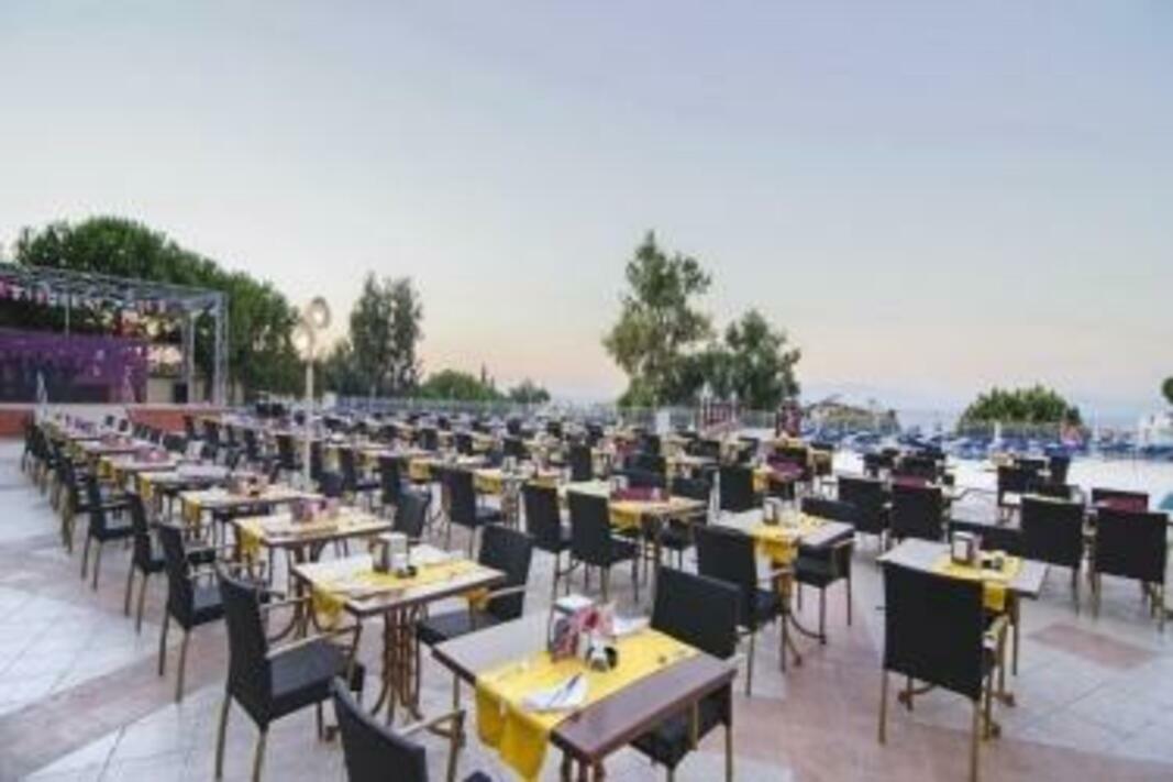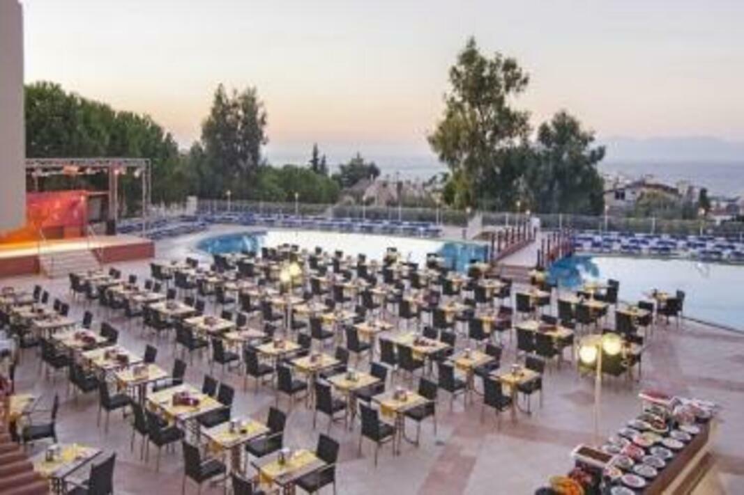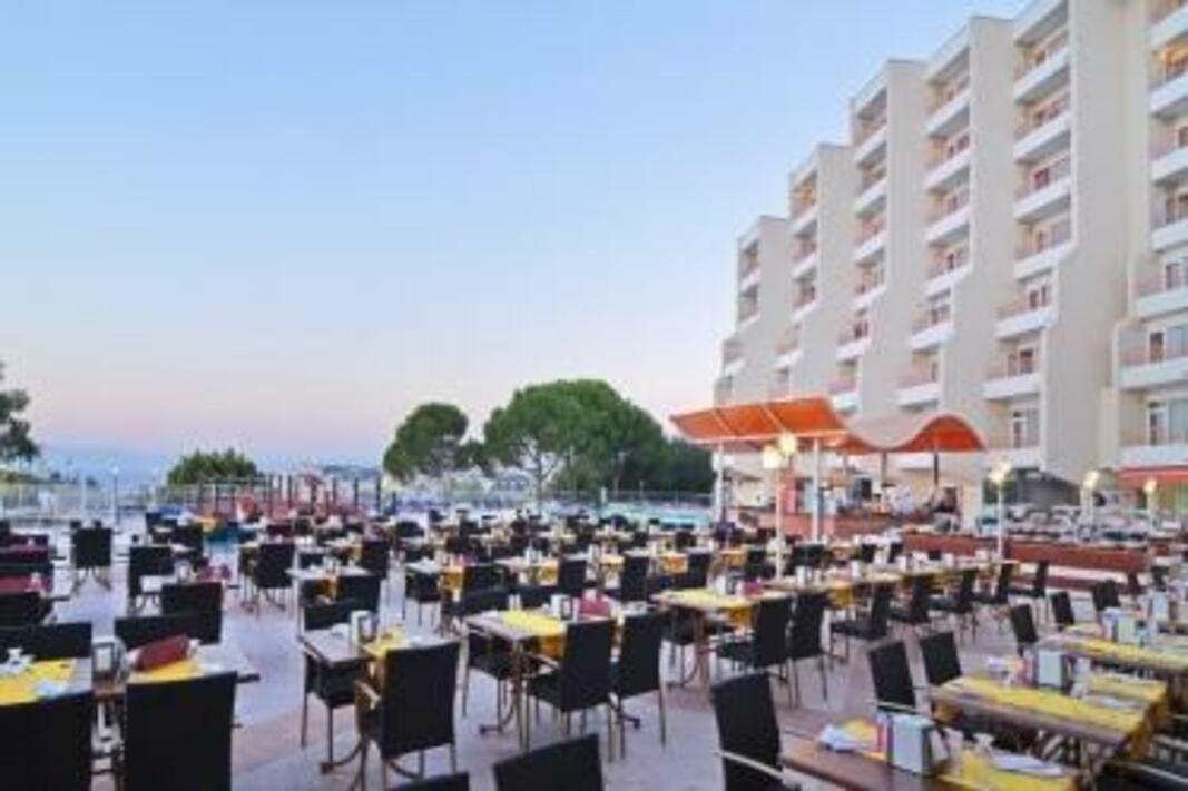 Facilities A lobby and a reception are available to travellers. The air-conditioned hotel features a restaurant, a bar, a TV room, room service, a laundry service and a hairdresser. Wireless internet access (no extra charge) is available to guests in the public areas. Shopping facilities are also available. Children can have a great time playing in the playground. Those arriving in their own vehicles can leave them in the car park of the establishment free. Rooms Each of the rooms is appointed with air conditioning, central heating and a bathroom. A balcony is included as standard in most rooms, offering additional space for relaxation. Many rooms feature a sea view, which further enhances the ambience. Cots are available for younger travellers. There is also a safe and a minibar for an additional fee. The advantages of the rooms include a tea/coffee station. Other features include a telephone and a TV. The bathroom offers convenient facilities including a shower. A hairdryer is also available. Special family rooms are available for families with children. Sports/Entertainment The accommodation offers an outdoor pool and a children's pool. A terrace, a sun terrace, sun loungers and parasols are available. The poolside bar serves a selection of refreshing drinks. Water sports enthusiasts are offered aquafit. The hotel offers numerous indoor sporting opportunities, with activities such as a gym, table tennis, darts and gymnastics, or for a fee, billiards. A range of wellness facilities, such as a spa and a sauna are offered bringung","addData":}. For a fee, guests can also take advantage of a hammam and massage treatments. Copyright GIATA 2004 - 2017. Multilingual, powered by www.giata.com for client no. 125125 Meals Half board is bookable. Available meals include breakfast and dinner.