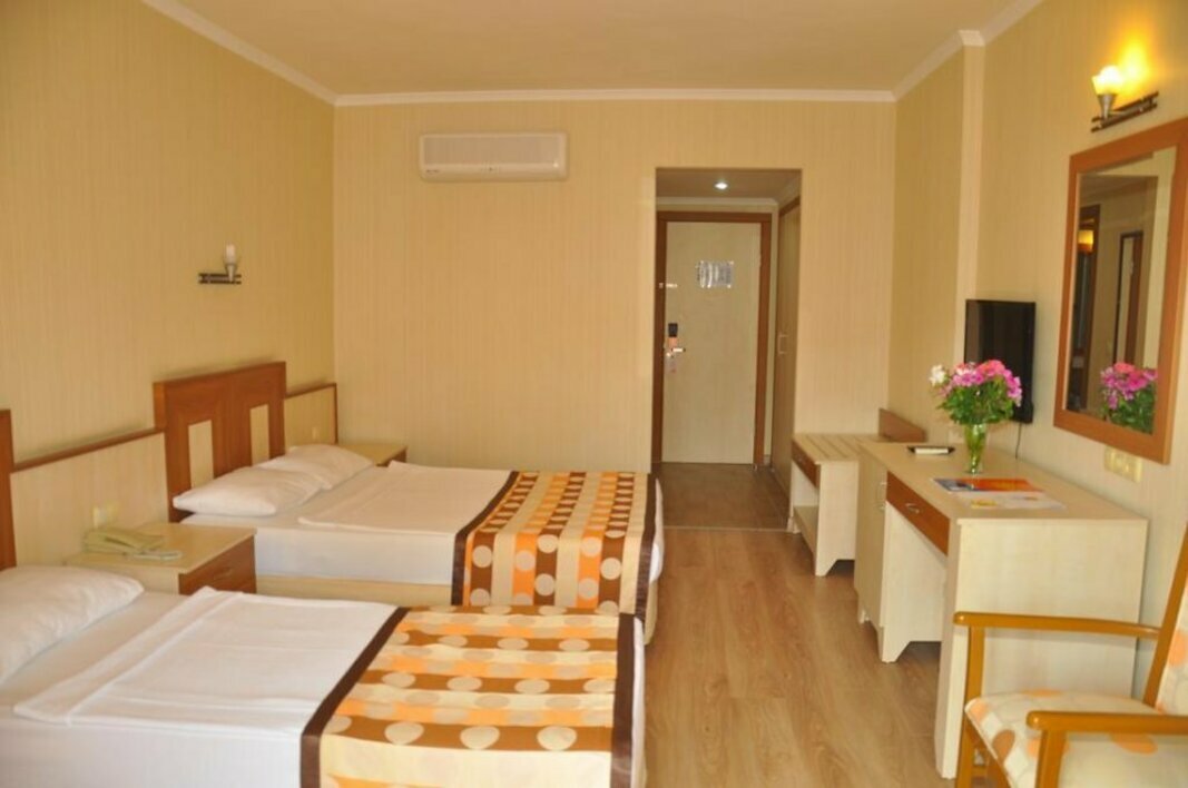 Реновация прошла в 2019 году, 247 номеров. Расположен в 90 км от аэропорта г. Анталья и в 35 км от Алании, в поселке Окурджалар, на ухоженной и зеленой территории. Подходит для семейного отдыха, пар и молодежи. Краткая информация: Курортный отель Stella Beach Hotel 5* в Алании предлагает хорошее сочетание цены и качества для тех, кто ищет комфортный отдых непосредственно вблизи моря. Территория отеля небольшая, и совсем рядом раскинулся собственный песчано-галечный пляж со всеми удобствами: много шезлонгов, спасатель, душ и кабинки для переодевания, и, конечно, бар с напитками и закусками. Отель также располагает большим бассейном с 3 водными горками для взрослых и детей среднего возраста, а для самых маленьких есть отдельный «лягушатник». Основные трапезы по концепции «Все Включено» проходят в главном ресторане, но один раз в неделю гости могут посетить на выбор один из а ла карт ресторанов – рыбный или итальянский. Для детей не предусмотрено специальное меню, однако большой выбор блюд, в том числе диетических, позволит подобрать подходящее питание для всех возрастов. Работает детский клуб, есть детская площадка, дневная анимация и мини-диско по вечерам. Взрослые отдыхающие в течение дня приглашаются на соревнования по водному полу в бассейне, волейболу на пляже, йогу, еще доступны столы для тенниса, бильярд и тренажерный зал. Вечерами в отеле проходит шоу-программа в амфитеатре и дискотека. Гости могут пользоваться бесплатным интернетом в лобби, а также услугами магазина и аренды автомобилей непосредственно в отеле. Отзывы туристов об отеле Stella Beach Hotel 5* положительные: отмечают хорошее расположение, разнообразное питание и отличный пляж, где всегда есть свободные шезлонги. Для организации вашего отдыха в отеле Stella Beach Hotel 5* в Турции свяжитесь с менеджерами Admiral.Travel, которые помогут забронировать тур на лучших условиях, быстро и без хлопот. Мы доступны по телефону, через мессенджеры, в наших офисах, а также вы можете самостоятельно осуществить бронирование на сайте.