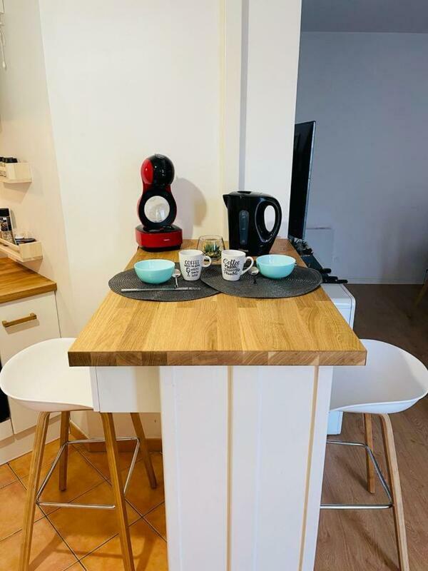 The apartment consists of 1 bedroom, a living room, a fully equipped kitchen with a fridge and a coffee machine, and 1 bathroom with a bath and free toiletries. Towels and bed linen are available in the apartment.