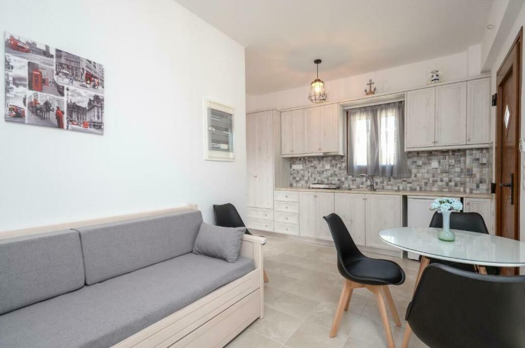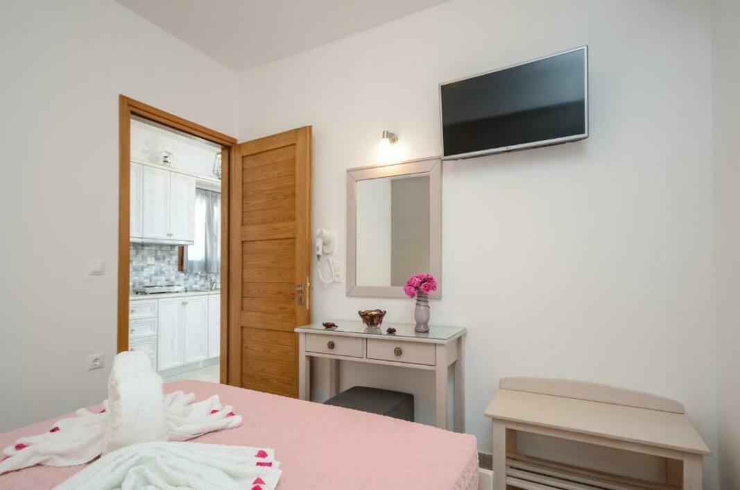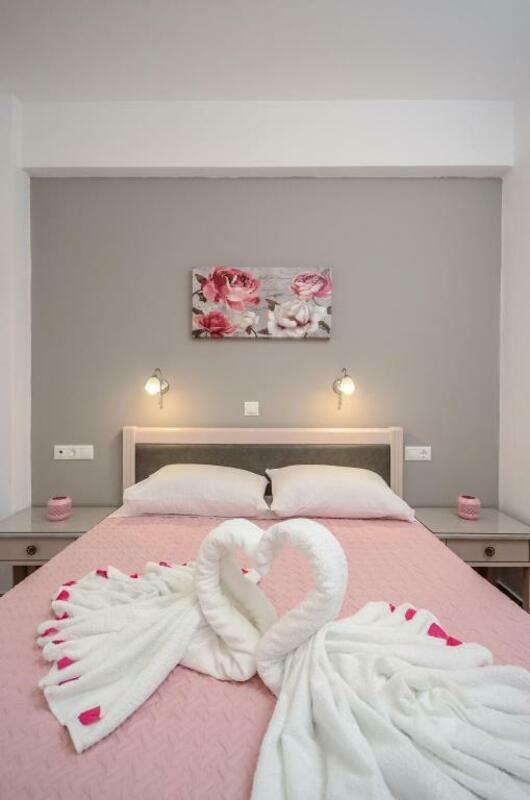 A kitchenette with cooking hobs, fridge and microwave is included in all the spacious apartments at the Margaritis. Each has a dining area and an LCD TV.