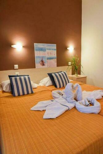 Air conditioning and adjustable central heating ensure that rooms maintain comfortable temperatures. Guests can relax on the balcony or terrace. Rooms include a double bed. Children's beds and extra beds can be requested for younger guests. A safe and a minibar are also available. A mini fridge and a tea/coffee station are standard features. An ironing set is provided for guests' convenience. A direct dial telephone, a TV, a radio and WiFi (no extra charge) are provided as well. Bathrooms are equipped with a shower and a bathtub, as well as a hairdryer.