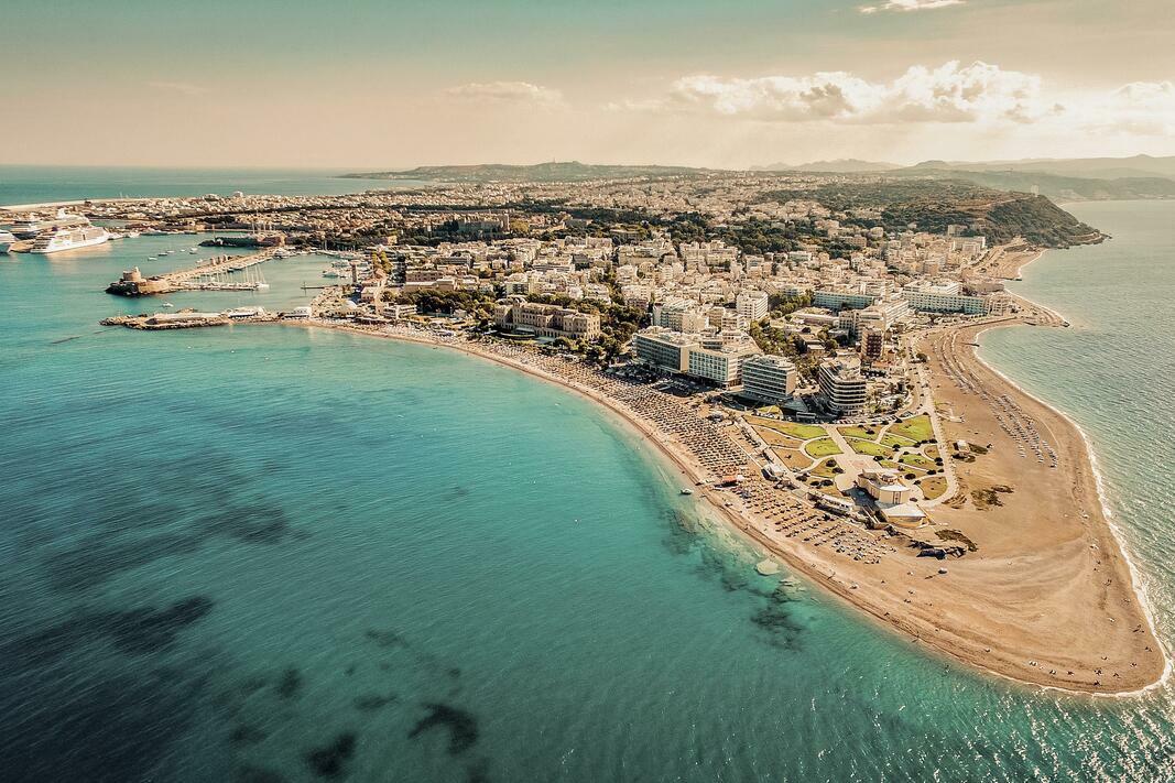 Centrally located in Rhodes Town, this hotel is right on the beach.