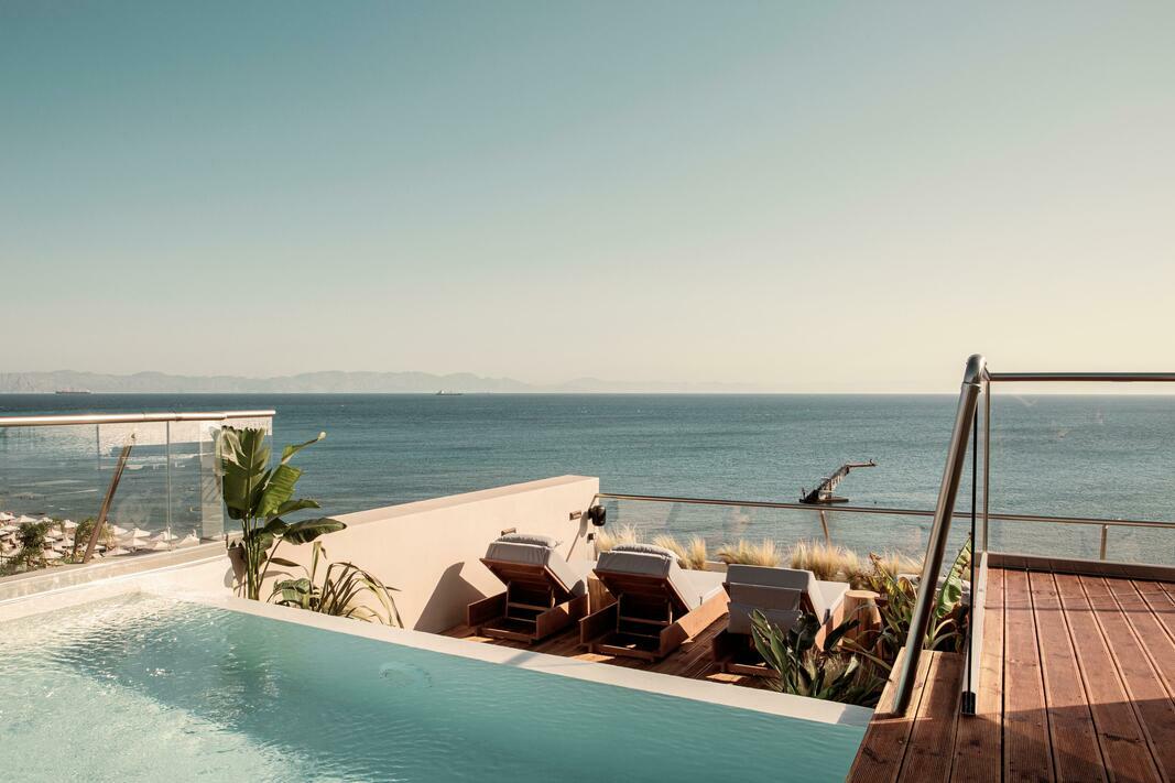Rooms are equipped with air conditioning and central heating. Guests can relax and enjoy the sea views from the balcony or private terrace of some rooms. The rooms have a king-size bed and a sofa bed. A safe and a minibar are also available. Additional features include a refrigerator and a tea/coffee station. A telephone, satellite television and WiFi (no extra charge) are provided as well. A hairdryer and a telephone are available in the bathrooms, which are equipped with a shower. The hotel has non-smoking rooms.