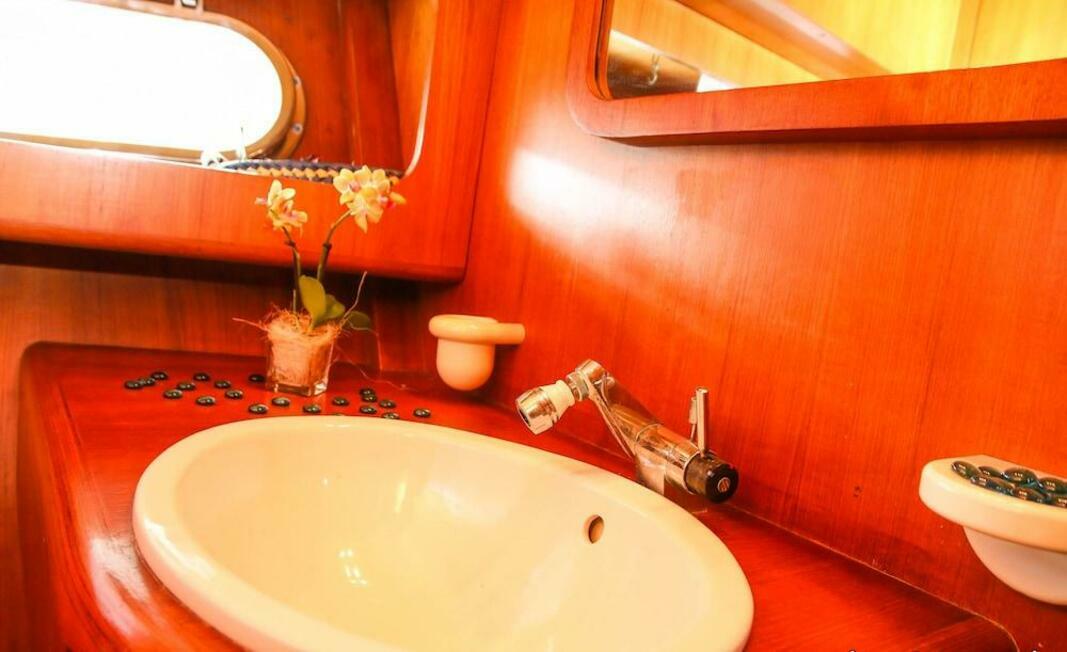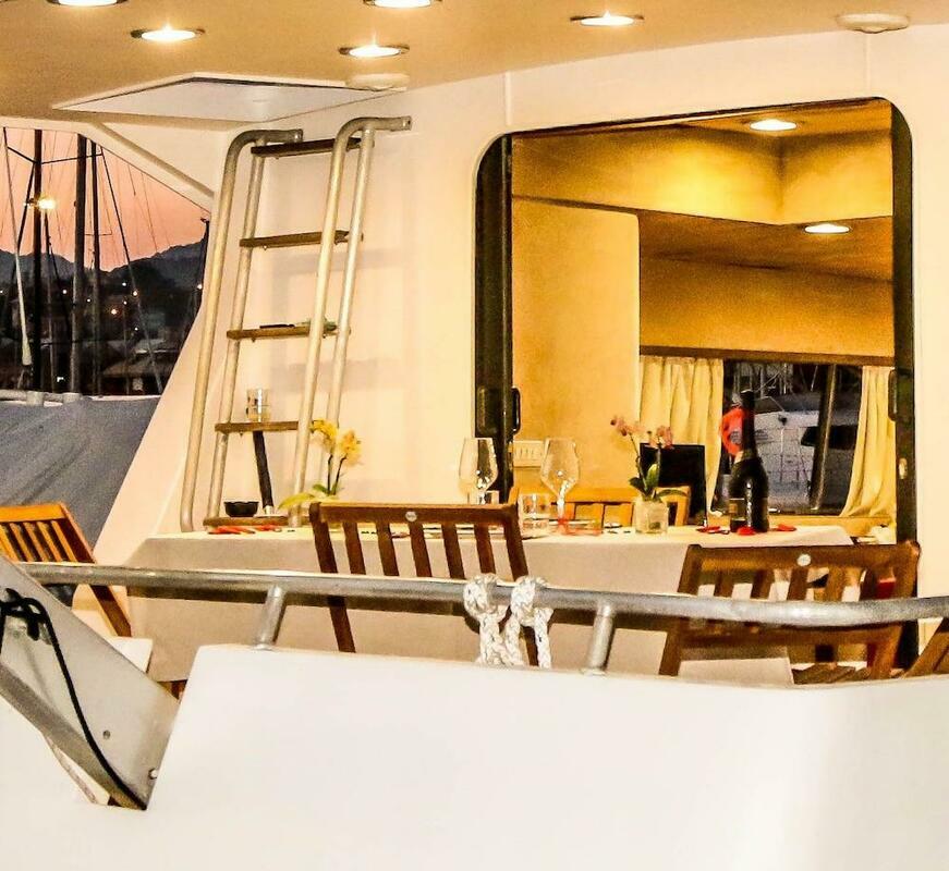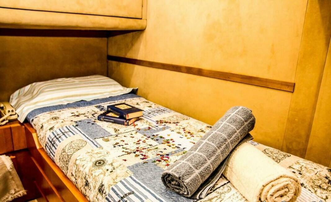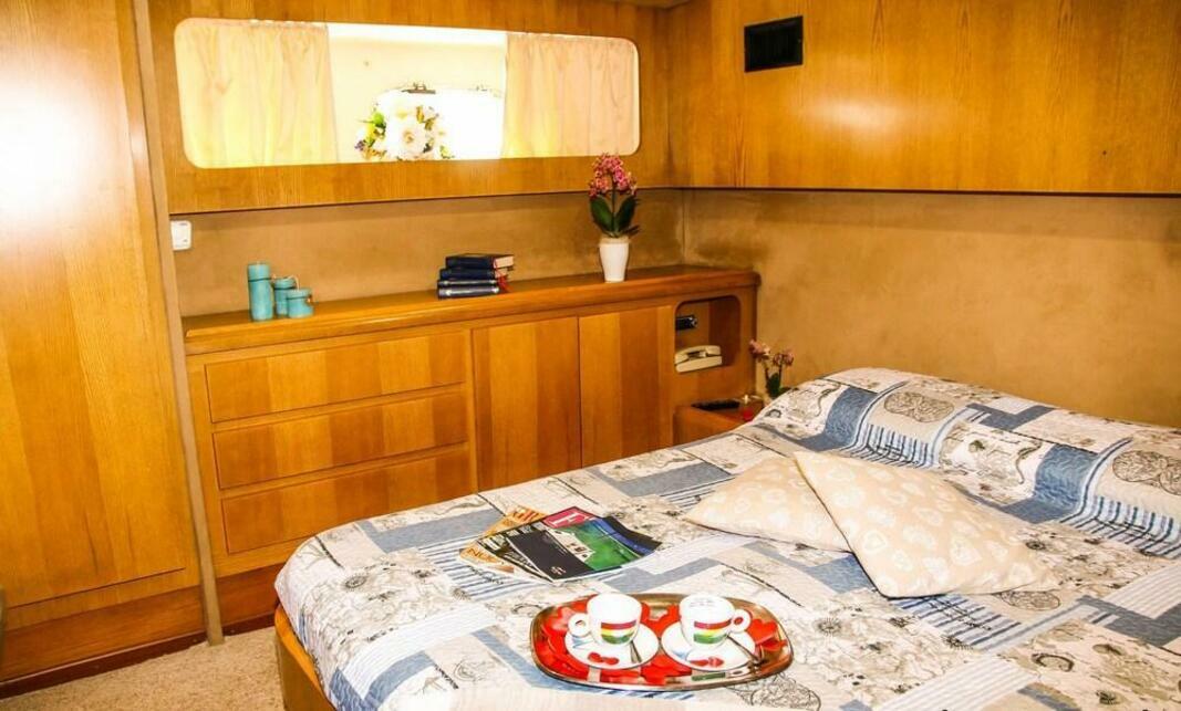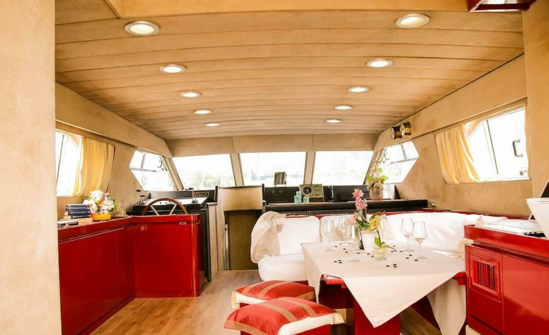 This vessel pulls anchor and sets sail from Genoa for at least part of your stay.