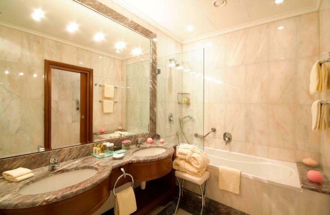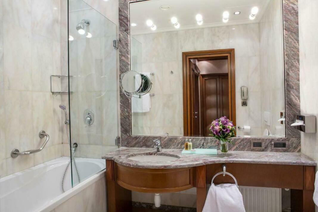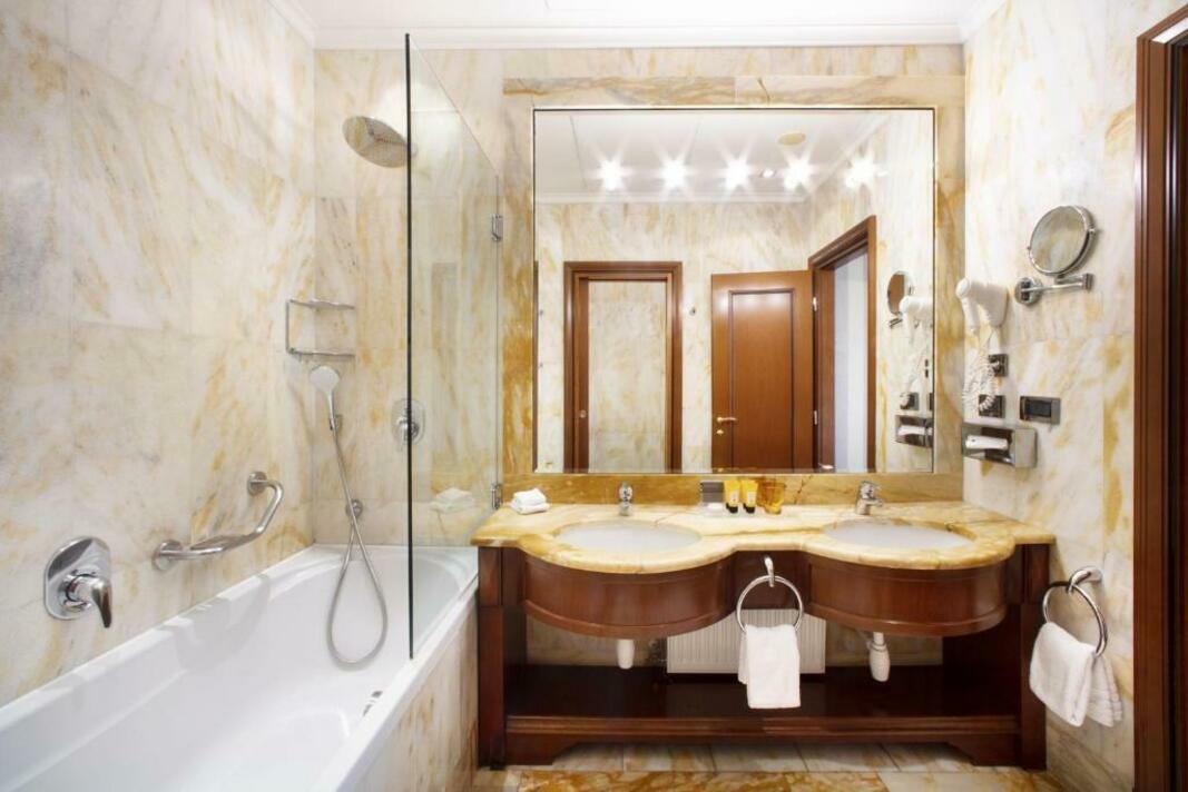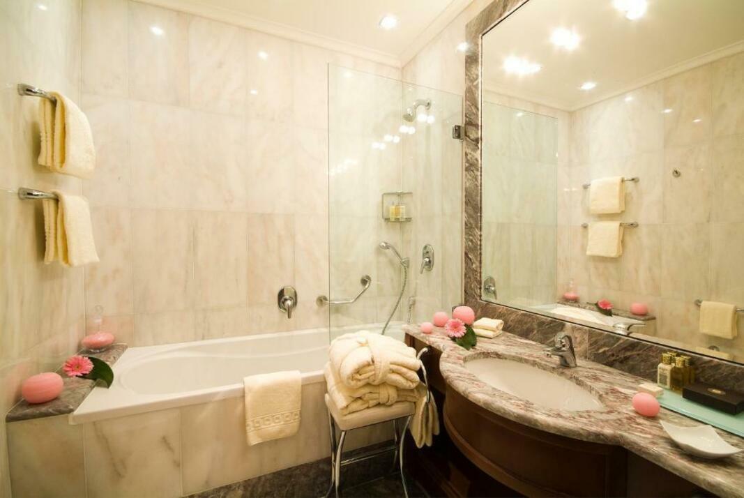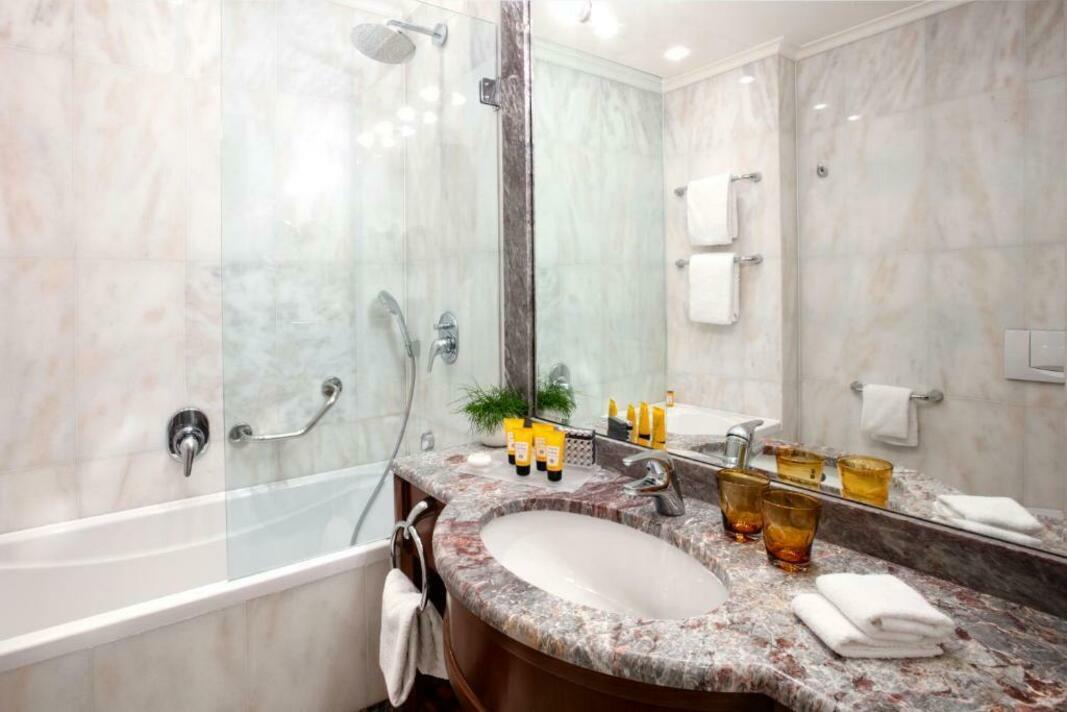 Air conditioning and central heating ensure that rooms maintain comfortable temperatures. All rooms are carpeted and include a double bed, a queen-size bed or a king-size bed. Extra beds can be requested. A safe, a minibar and a desk are also available. Additional features include a refrigerator, a mini fridge and a tea/coffee station. Further amenities include an ironing set and a trouser press. A direct dial telephone, a television with satellite/cable channels, a radio, an alarm clock and WiFi provide all the essentials for a comfortable holiday. A turndown service provides guests with additional comfort in the evening hours. Slippers are included. Bathrooms are equipped with a shower, a bathtub and a bidet. A hairdryer, a vanity mirror, bathrobes and a telephone are available for daily use. As a special feature, bathrooms are also stocked with cosmetic products and a selection of towels. Wheelchair-friendly rooms can be booked. The hotel has family rooms, non-smoking rooms and smoking rooms.