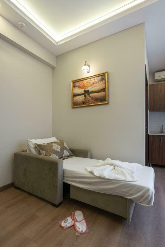 Air conditioning and central heating ensure that rooms maintain comfortable temperatures. The rooms have a queen-size bed and a sofa bed. Amenities include a kitchenette, a TV and WiFi (no extra charge). Guests will also find slippers in their rooms. For extra comfort in the bathrooms, guests are offered cosmetic products. The hotel has non-smoking rooms.