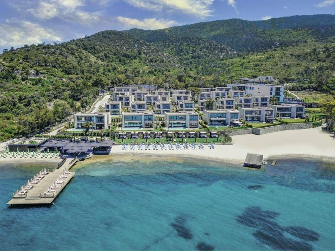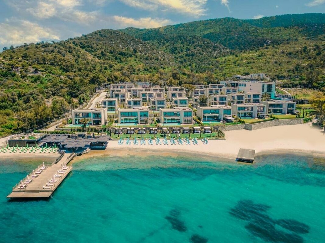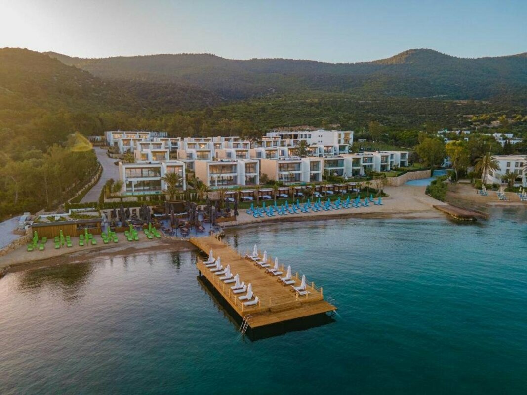 This holiday complex is located in the tourist district of Bodrum directly beside the beach in Torba Bay (sandy beach, with pebbles nearer the shoreline). Torba is only around 6 km away and it is also just 11 km to the city of Bodrum that may easily be reached with the local, regular buses. Transfer time to Bodrum airport is around 25 minutes.
